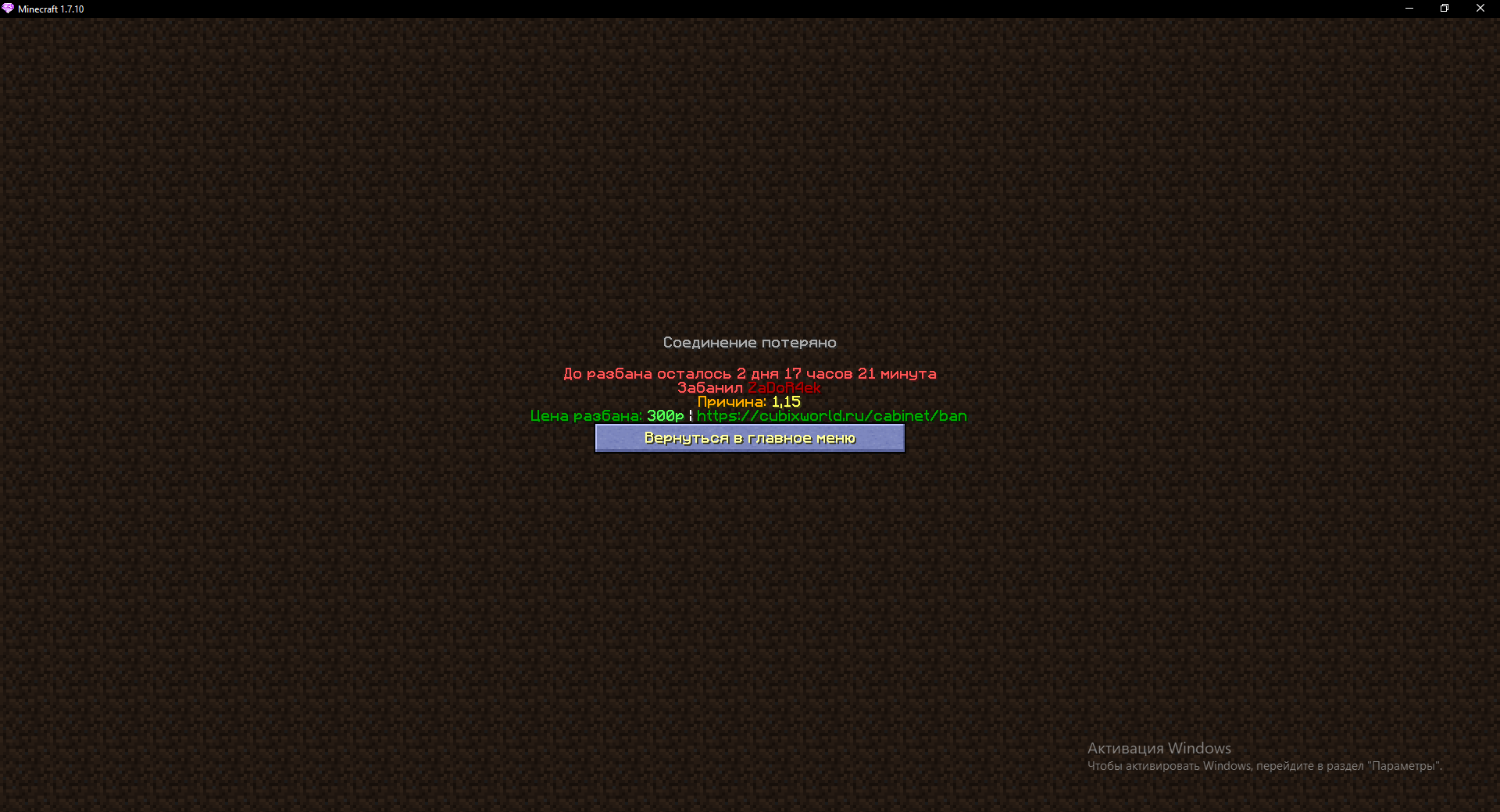 Двадцати летний лоб просит разбан ибо после работы хочет кубики ломать