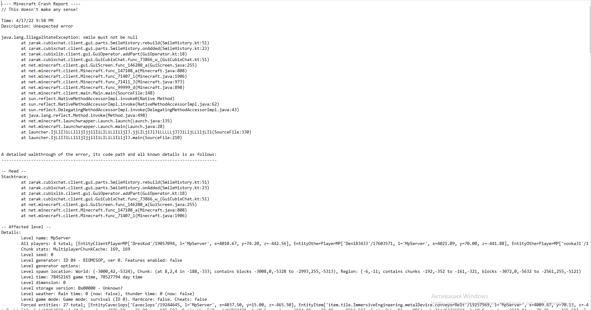Краш игры и отсутствие соединения с сервером