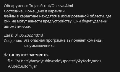 - Файл называется "Trojan:Script/Oneeva.A!ml"