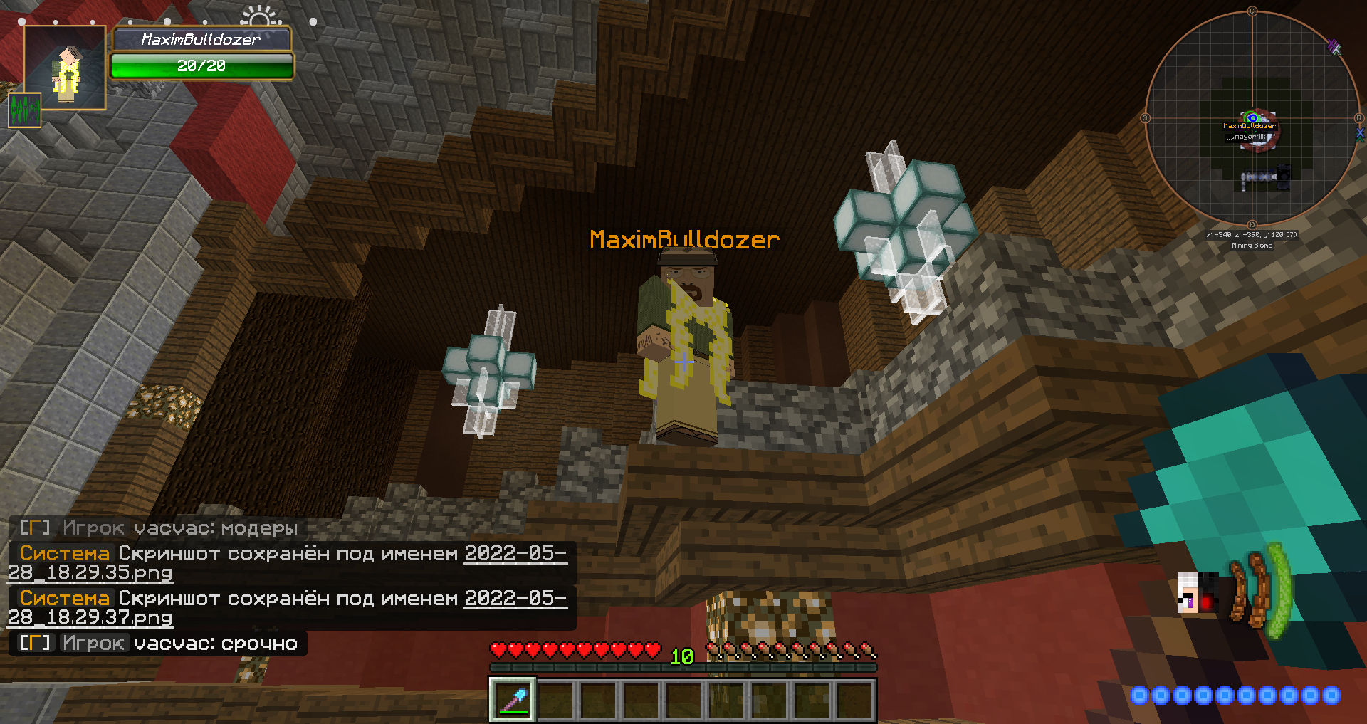 3. Описание ситуации:этот человек берет и кидает из неоткуда эндерперлы на минииграх