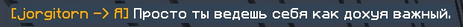 И еще,то что ты начал писать про провокацию,твои сообщения мне в личку после мутов :"ОТДЫХАЙ МАЛЬЧИК" " ПРОДОЛЖАЙ" вот это явная провокация,унижение
