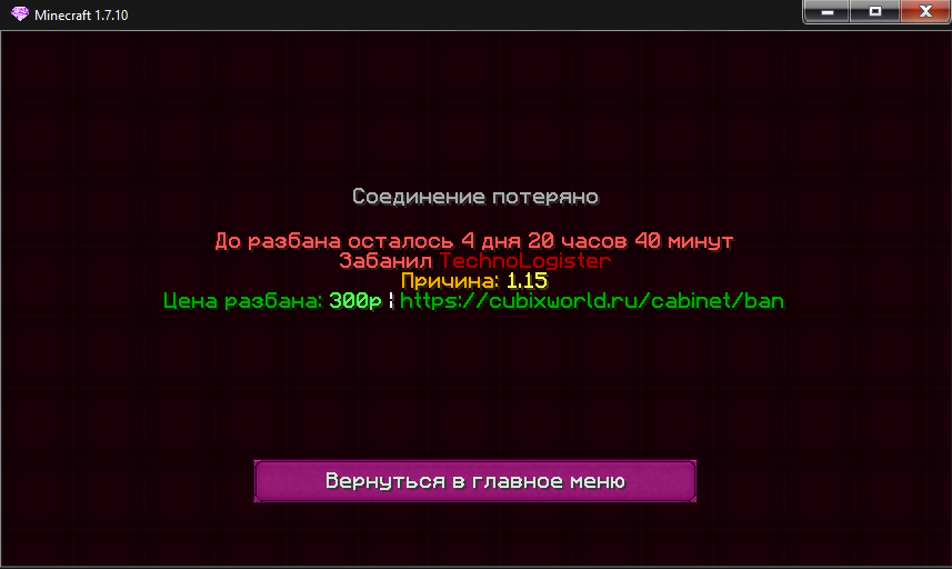 5.Скрнишот таблички бана (Можно взять с личного кабинета);