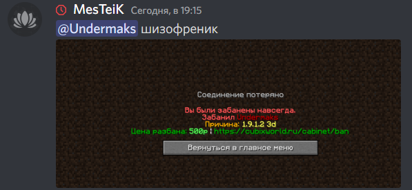 Отказано Undermaks | Неправомерные баны от Управляющего