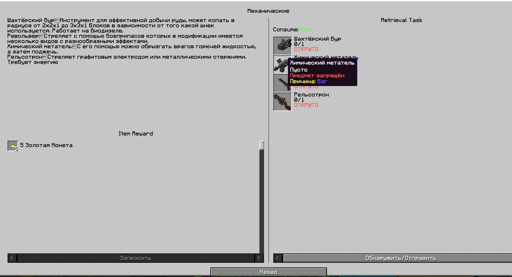 HiTech 2 ник lmrg88l не возможно пройти квест из-за запрещенного предмета, даже крафт нет что бы продолжить дальше, как дальше быть
