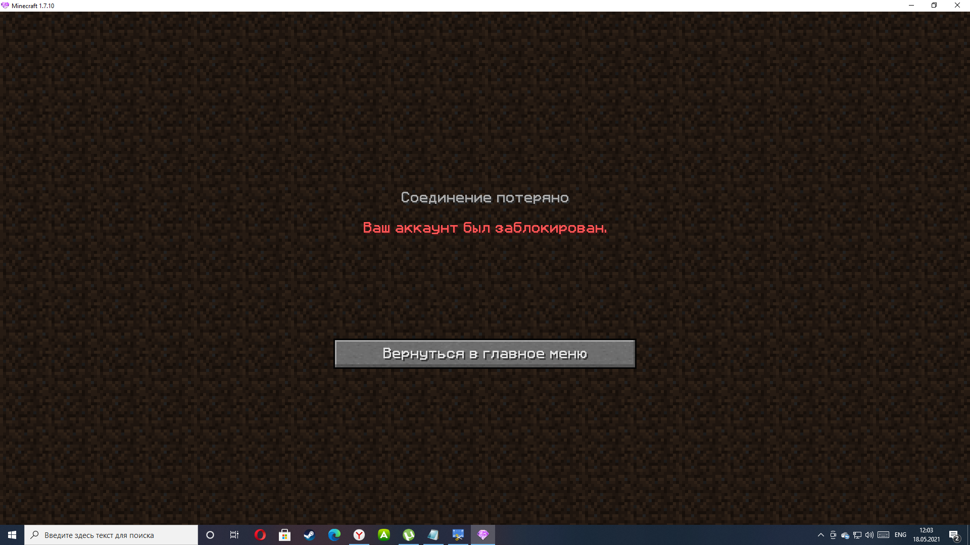 - Интересующий вас вопрос:При заходе на сервер пишет " Ваш аккаунт был заблокирован" вчера все хорошо было