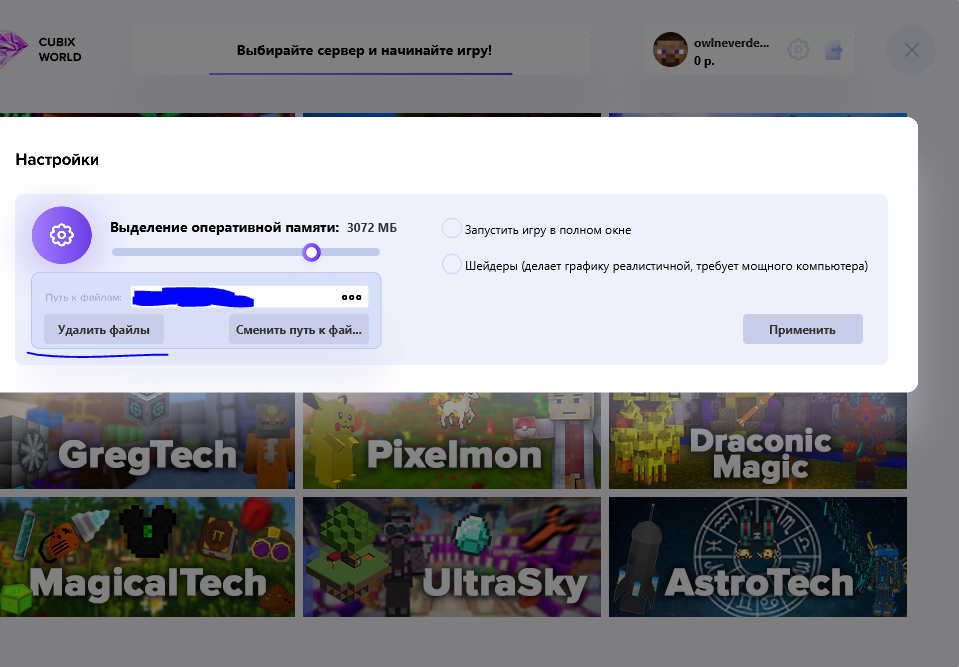 Процесс удаления : CubixWorld > открыть > шестерня возле ника > удалить файлы, скриншот предоставляю ниже.