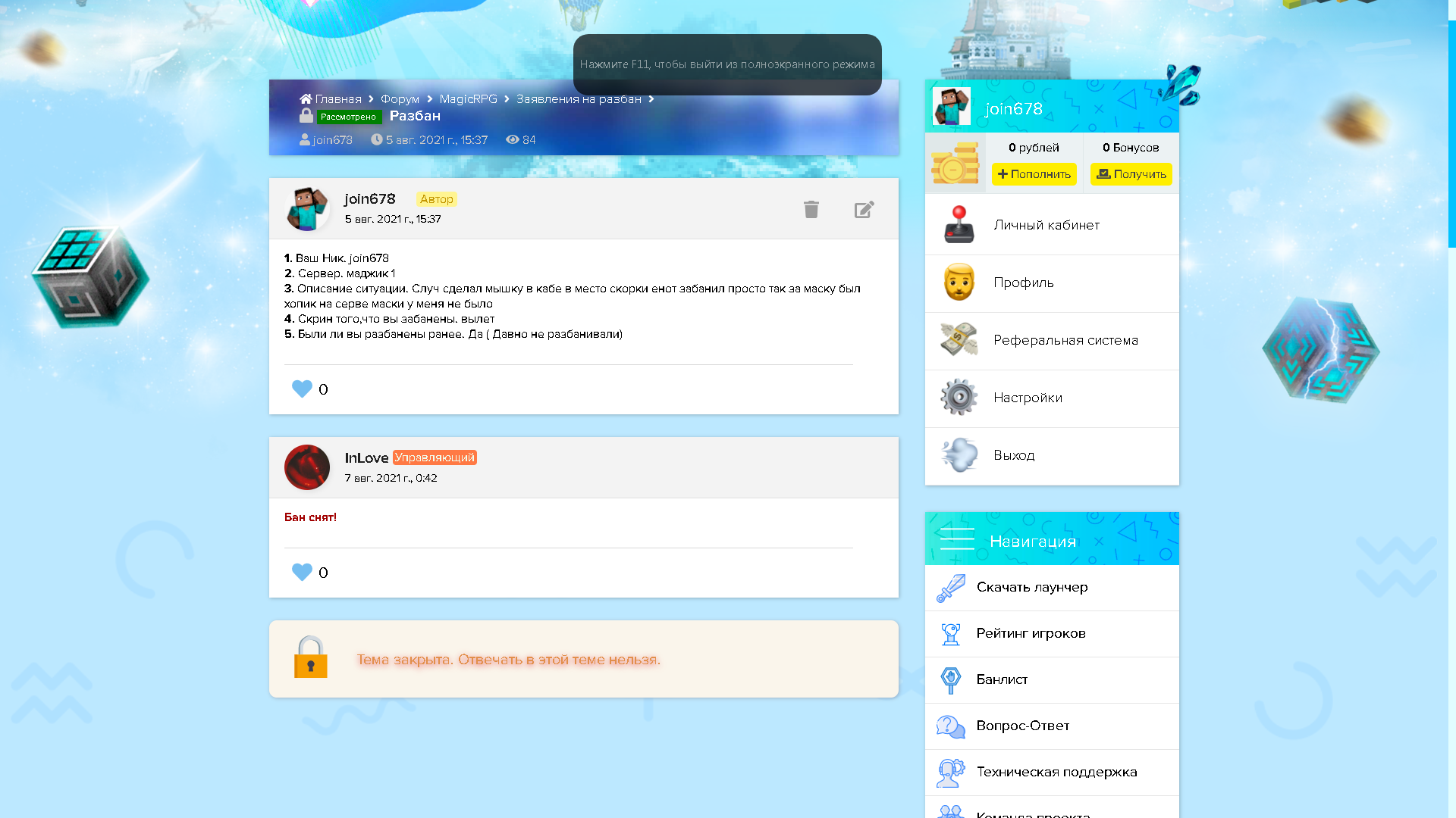 5. Были ли вы разбанены ранее. Да ( Давно не разбанивали)
