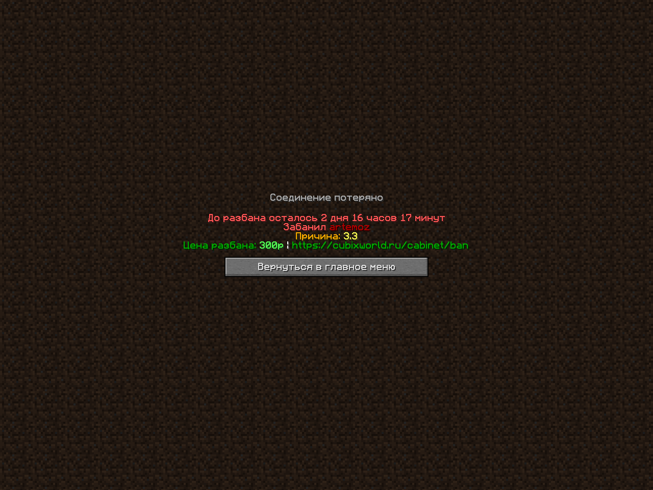 3. Забанил по 3.3 на 3 дня. Прошу снять бан;больше такого не повторится но чел вещи вернул мне которые я иму дал