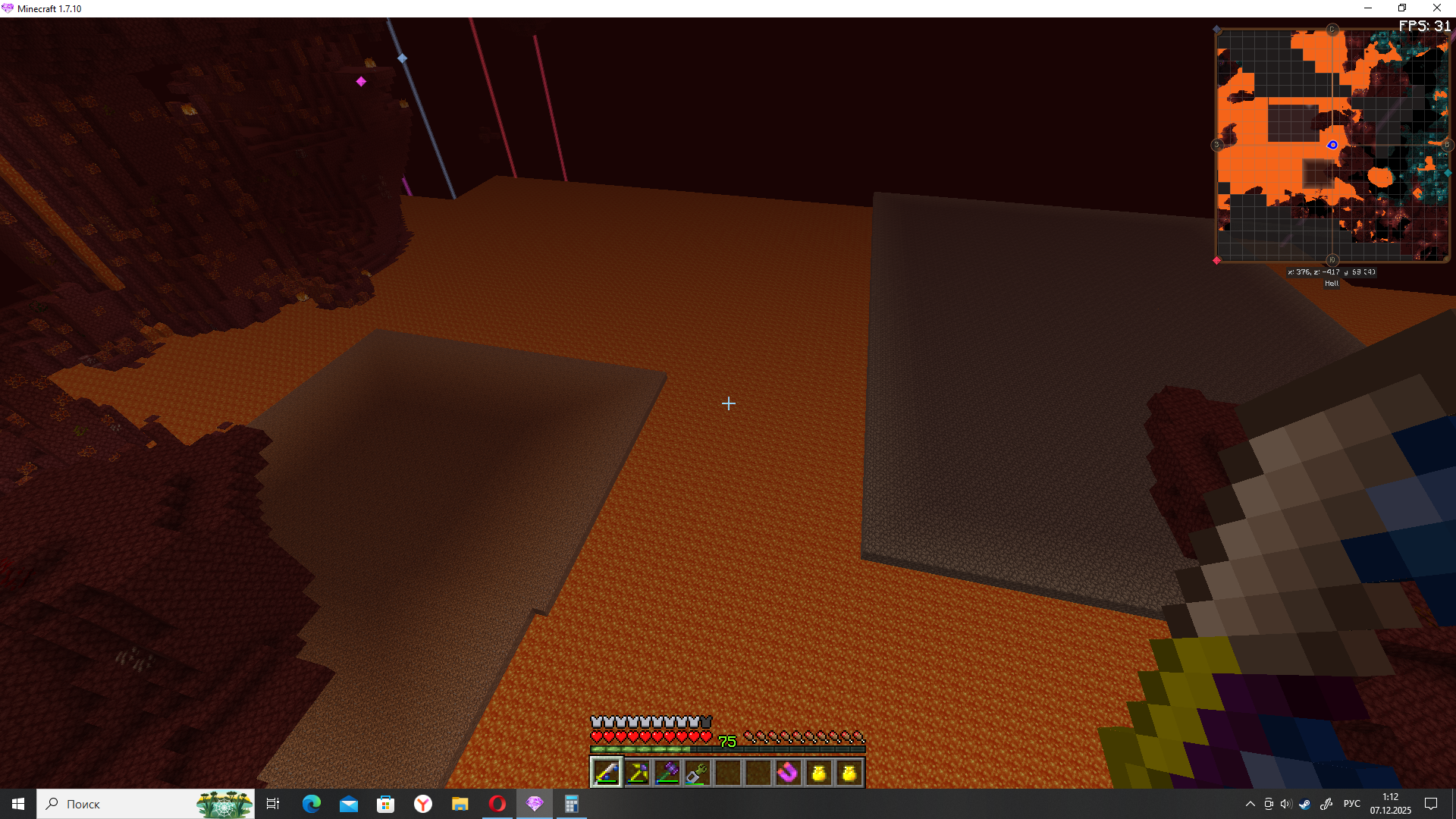 Сделал вторую площадку 3х3 чанка в аду, на этот раз прямо посреди адской крепости. Заспавнились ВСЕ адские мобы.... конечно кроме гаста.