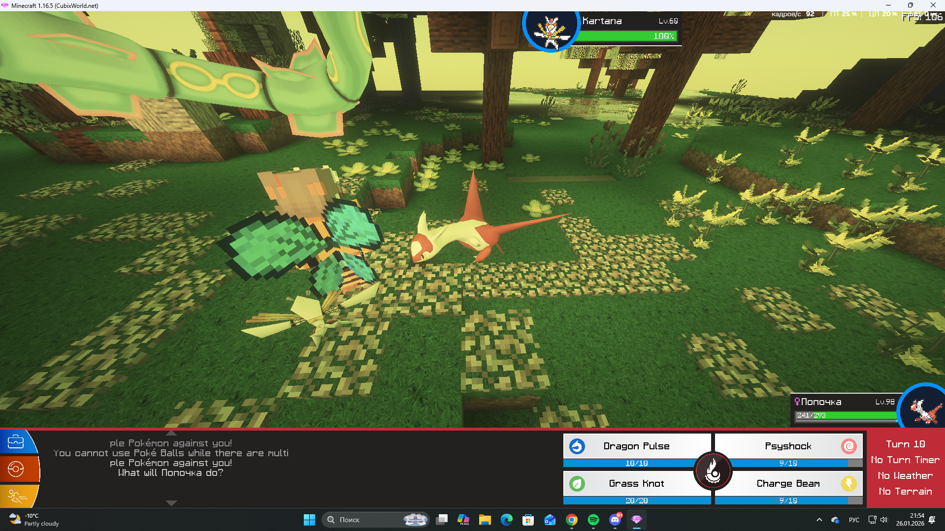 - когда попытался поймать картану в орде (до этого убив всех остальных покемонов) игра решила выдать что я не могу ее ловить потому что покемонов несколько