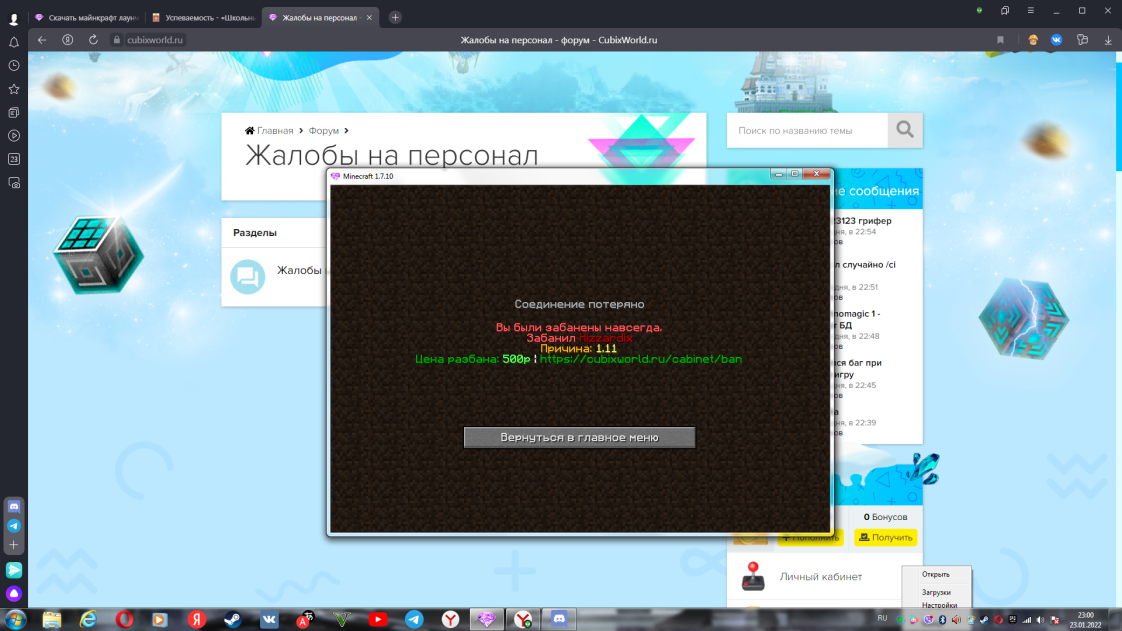 - Описание ситуации: подлетел админ . ничего не объяснив спросил значение моего ника, я сказала что его нет ( я играю с друзьями и особо не заморачивалась над ником, поэтому я поставила этот ник , так как ставлю его всегда когда нет идей ) , после того как я сказала,мне прилетает бан навсегда по 1.11