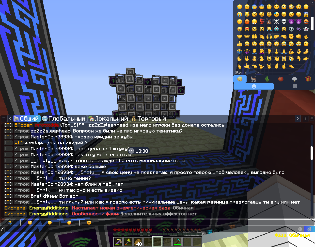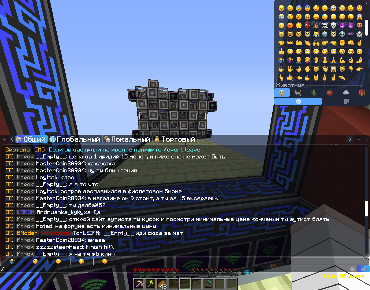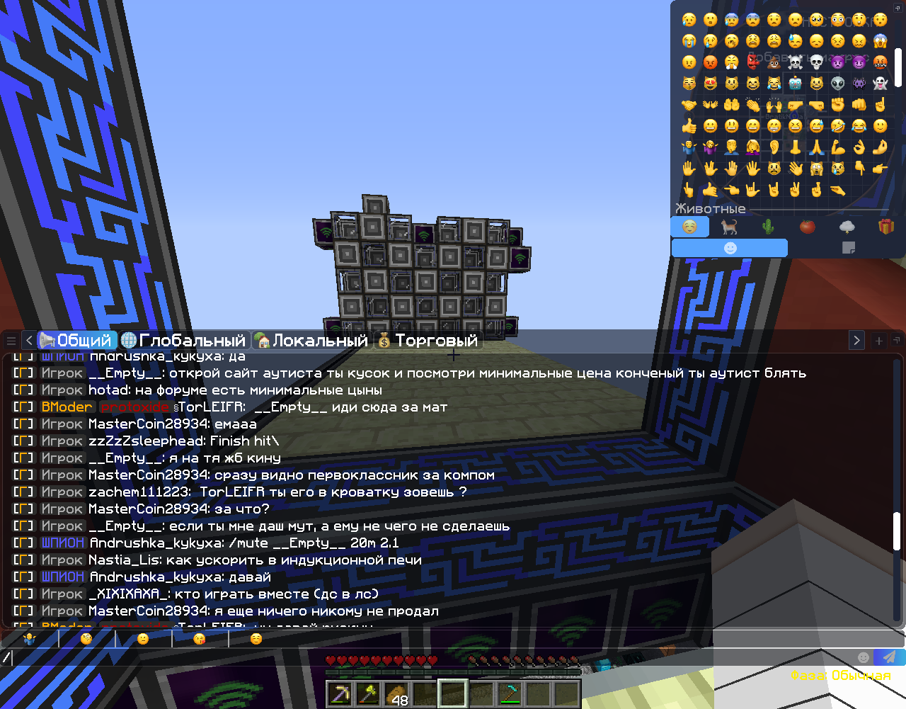тем временем Bmoder не как не обращает внимание на это нарушение, но когда я попытался объяснить игроку что ниже минимальных цен продавать не чего нельзя Bmoder под ником TorLEIFR увидел в моём сообщении мат и выдал мне мут, но при это не как не повлиял на нарушения игрока MasterCoin28934