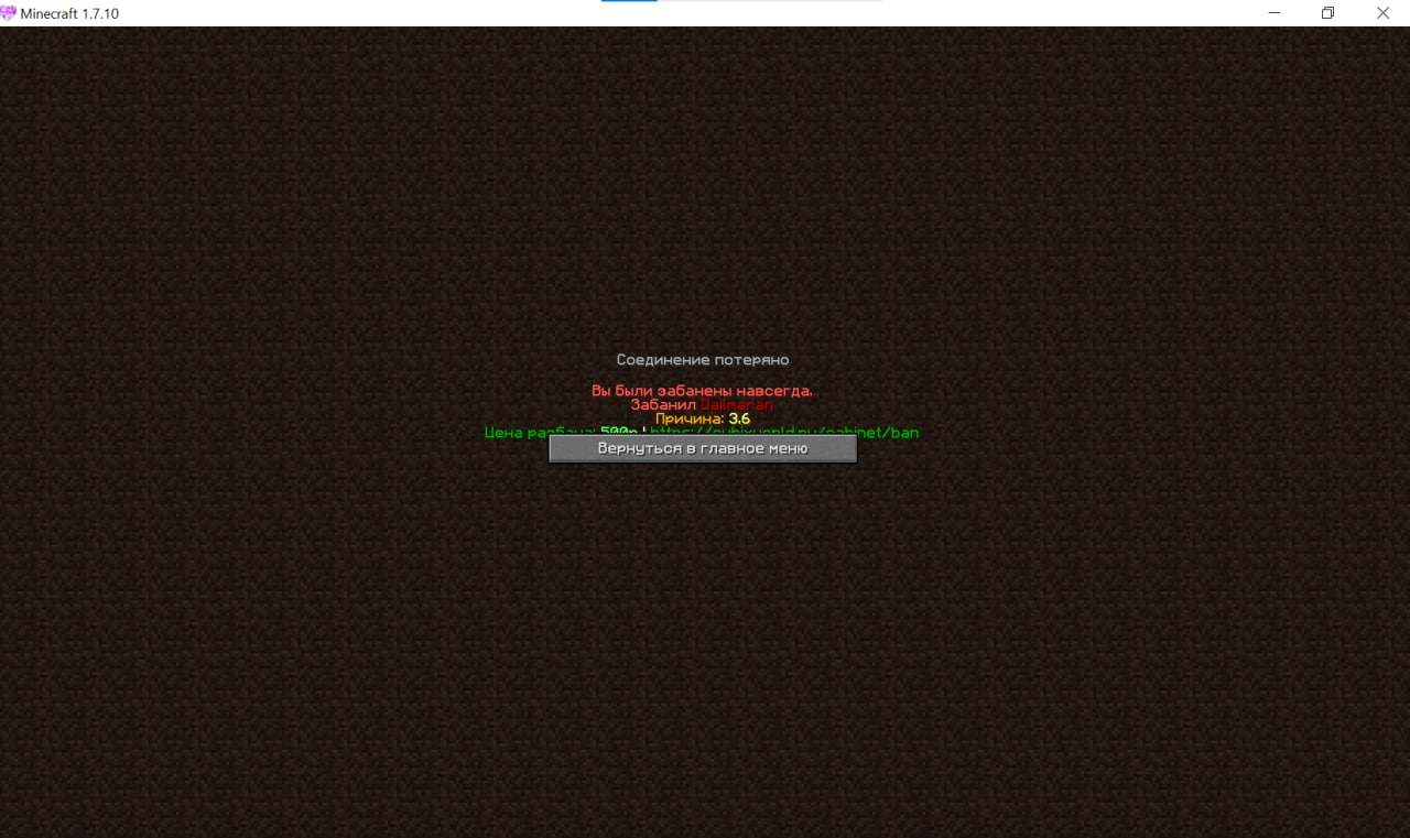 4. Скрин бана: