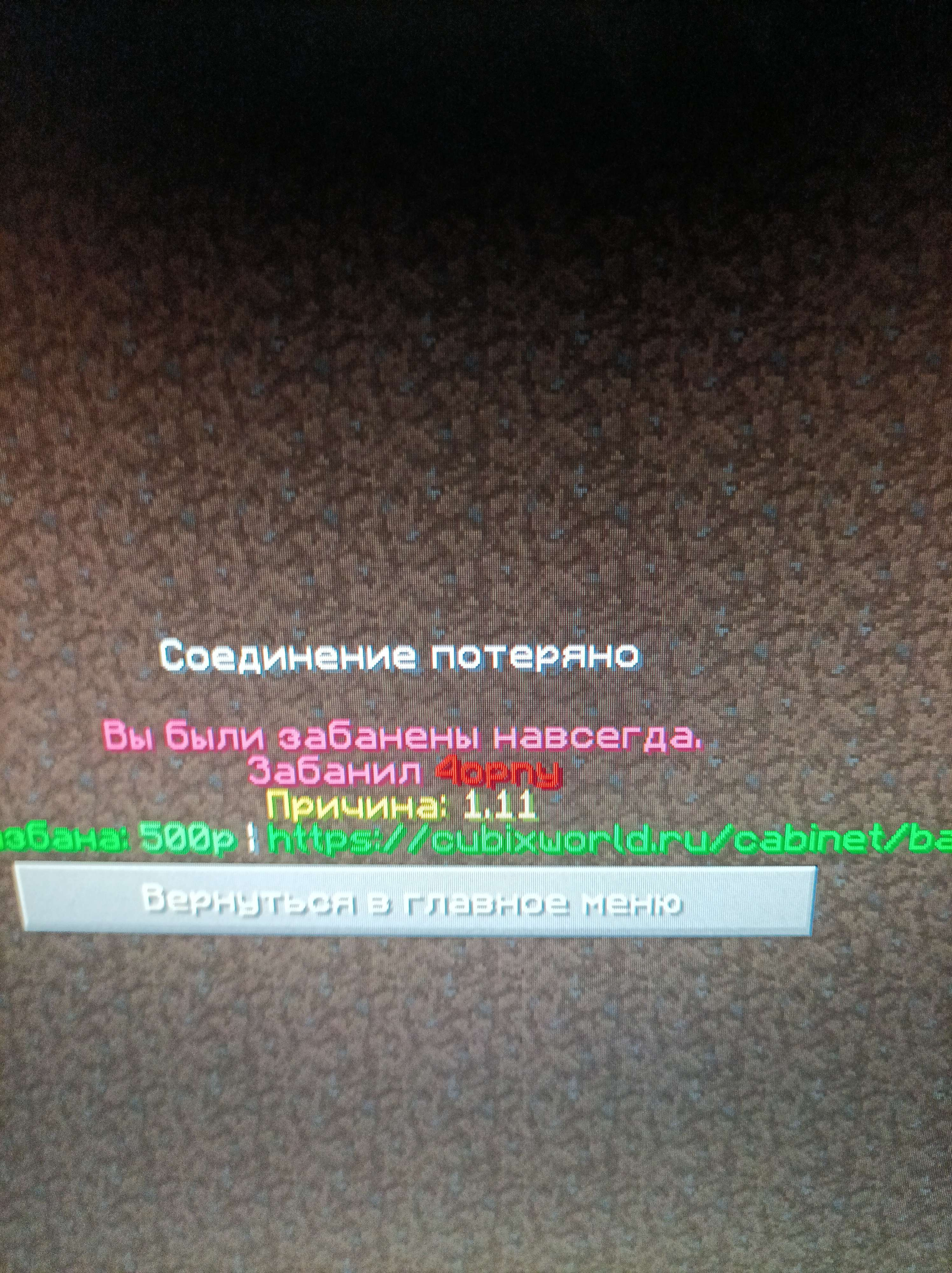 Был забанен я по причине 1.11 без предупреждений(( в общем за то, что мой ник Lidekoll схож с ником модератора LeidCool. Если честно я все еще не понимаю этого бана, я играл на этом акке 2 дня, меня не банили и все было хорошо, и только вчера мне прилетел бан... Придётся менять ник, который я использовал абсолютно везде. Я могу сменить ник и получить обратно все мои ресурсы с аккаунта Lidekoll