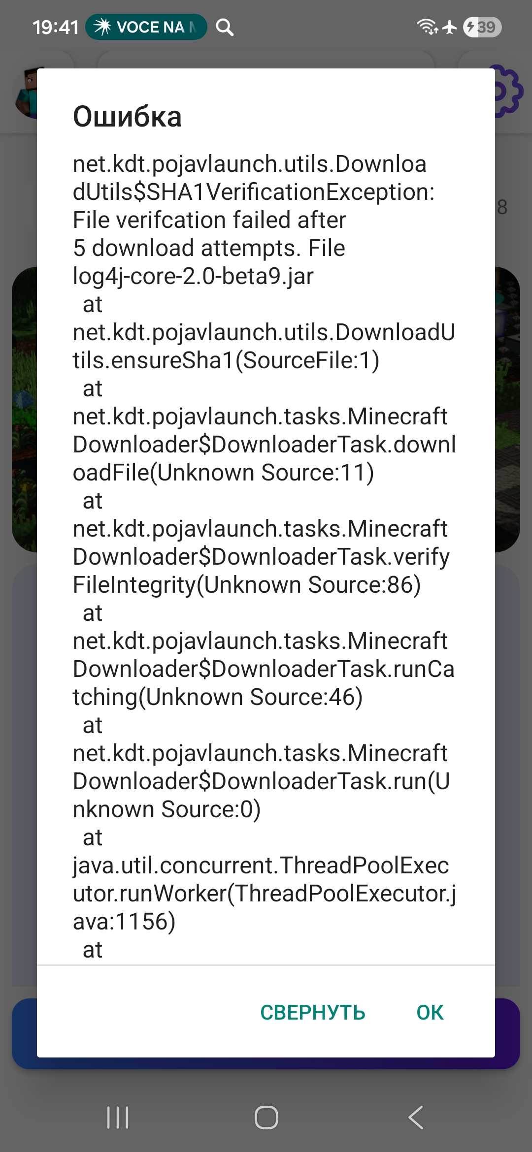 - Не заходит в игру, при нажатие кнопки играть: идет загрузка и далее ошибка