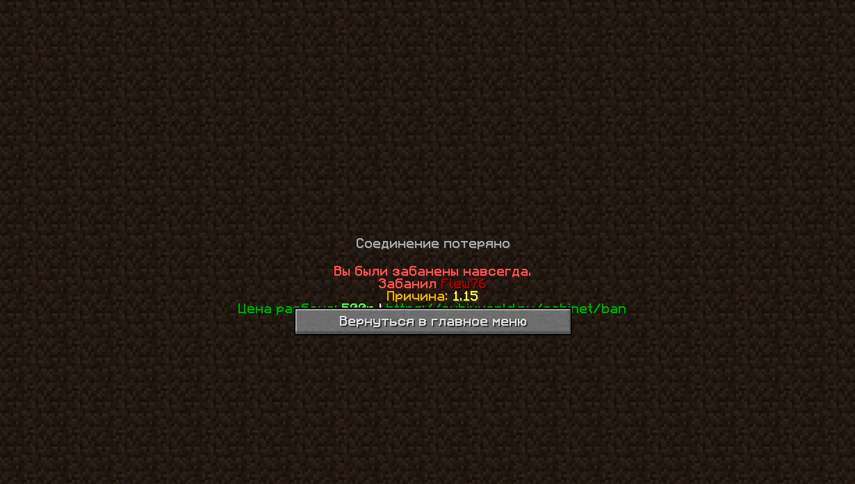 2. Описание ситуации, расскажите по подробнее: я ушёл покушать картошечку с курочкой из духовки, прихожу и вижу бан навсегда по 1.15. Я не дюпал, я выигрывал в казино. Он должен был забанить по 1.17, до выяснения обстоятельств, но он забанил по 1.15, значит у него есть доказательства моего нарушения, прошу мне предоставить :)
