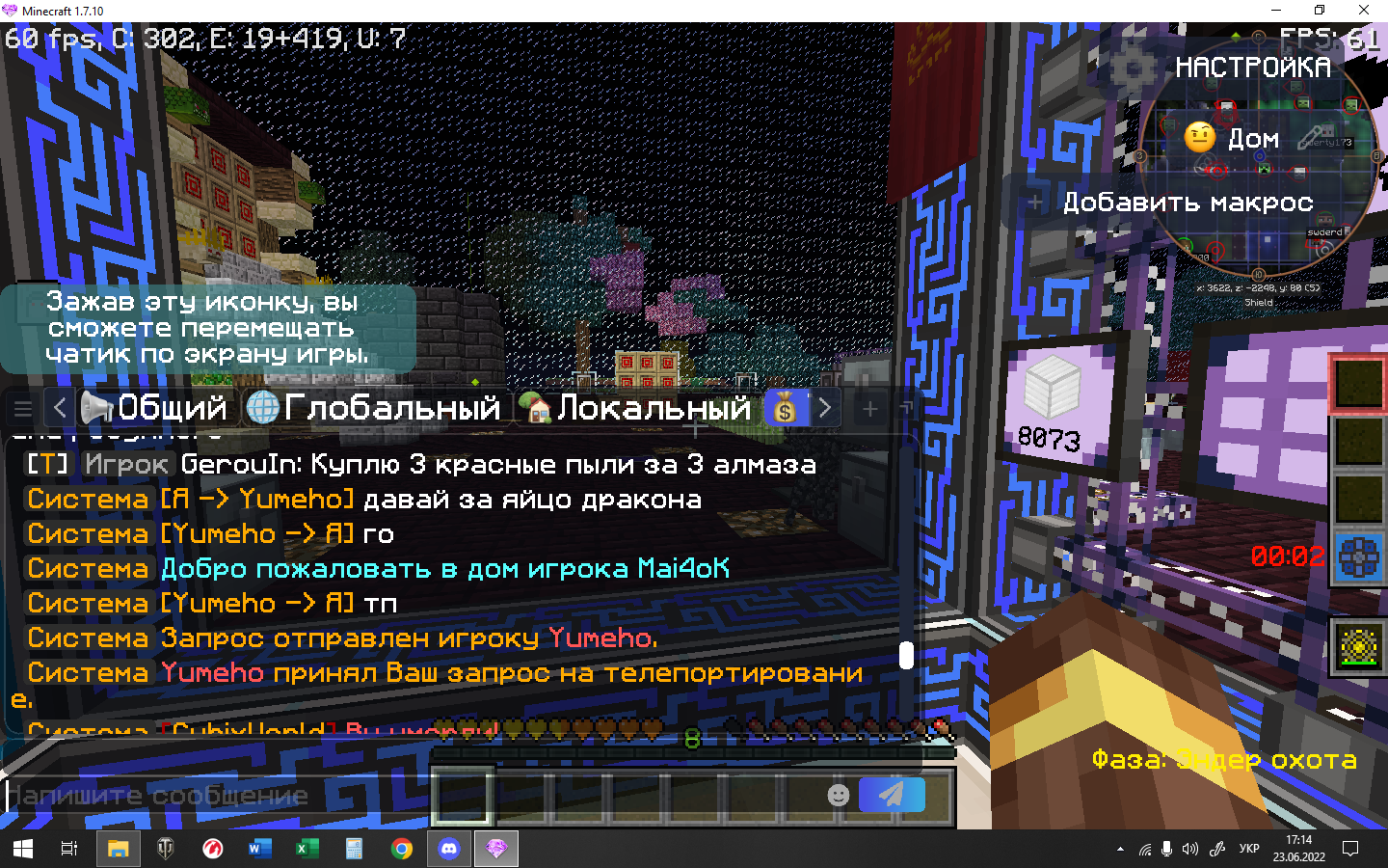 он покупал смерти за ресурсы, я попросил яйцо дракона, я дал себя убить пишу как будеш давать по трейду или тп ?, он меня шлёт