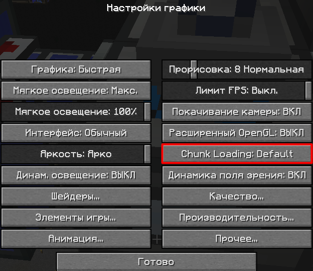 Попробуй перед заходом на сервер: Настройки - настройки графики - chunk loading выставь default.
