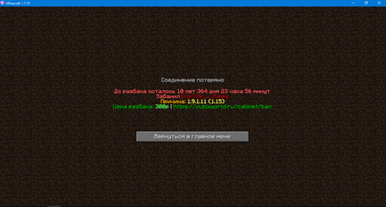 4. Скрин того,что вы забанены. (Можно взять с личного кабинета на сайте).