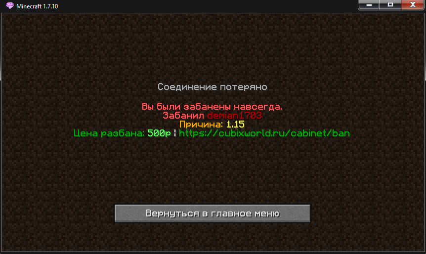 4. Скрин того,что вы забанены. (Можно взять с личного кабинета на сайте). прекрипил