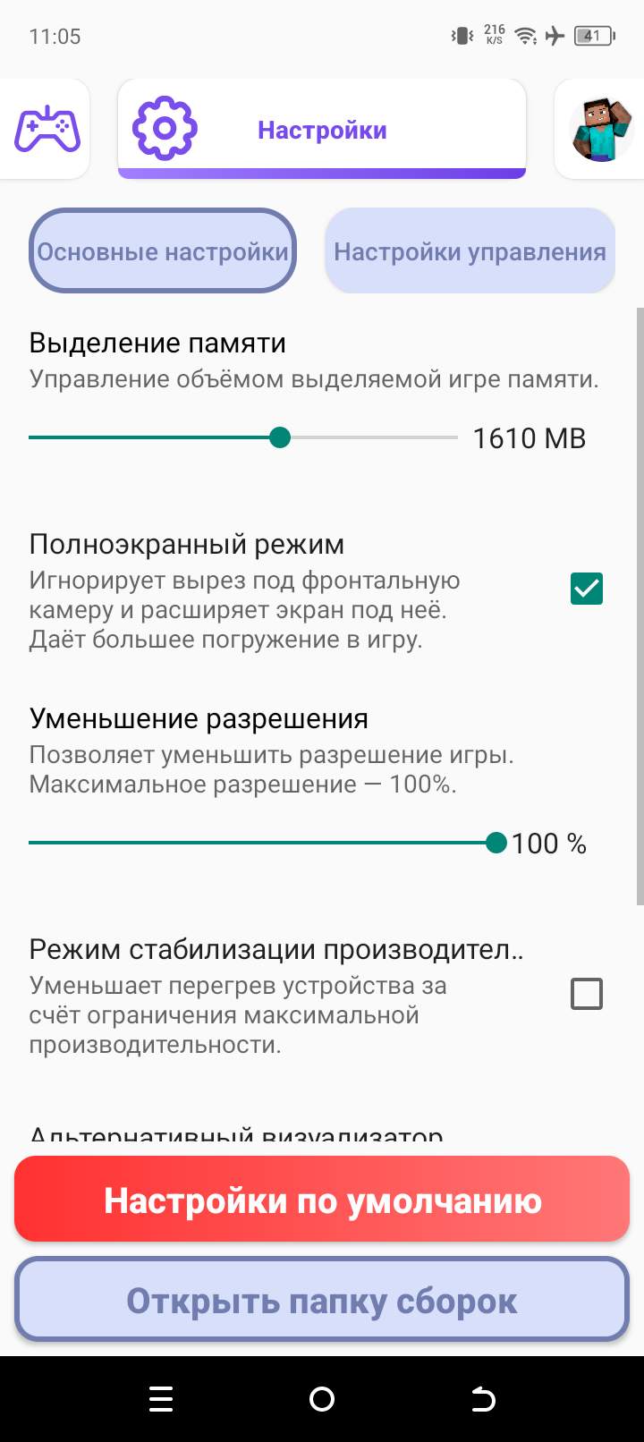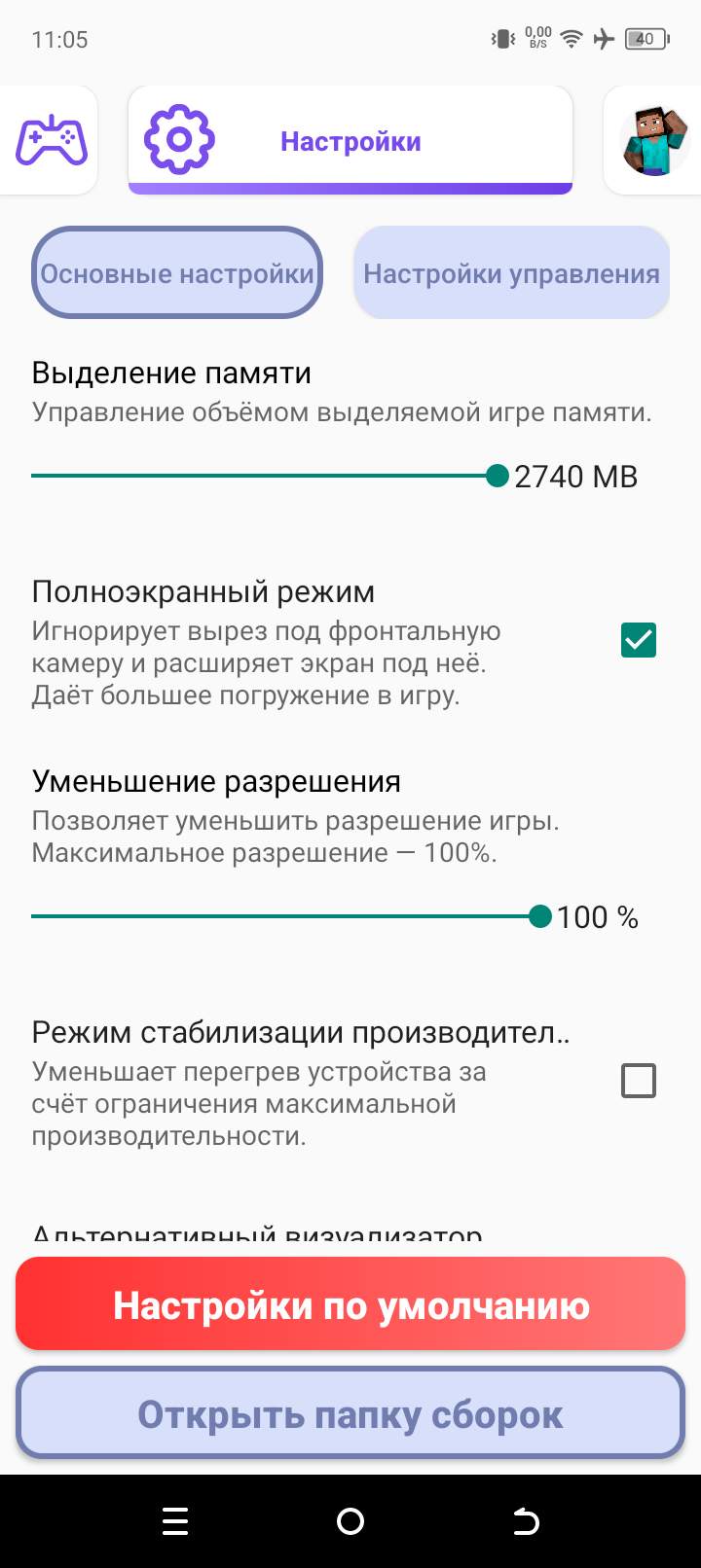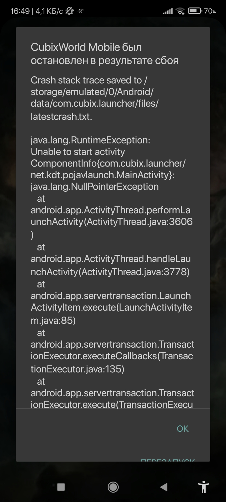 - Интересующий вас вопрос: У меня есть проблема, на мобиле в лаунчере можно выделить только 1024 мб, при том, что у меня есть 2 Гб свободных (именно свободных) и еще 2 Гб файла подкачки, при том, когда пытаюсь зайти, выдает ошибку и тупо вылетает из клиента обратно в лаунчер.
