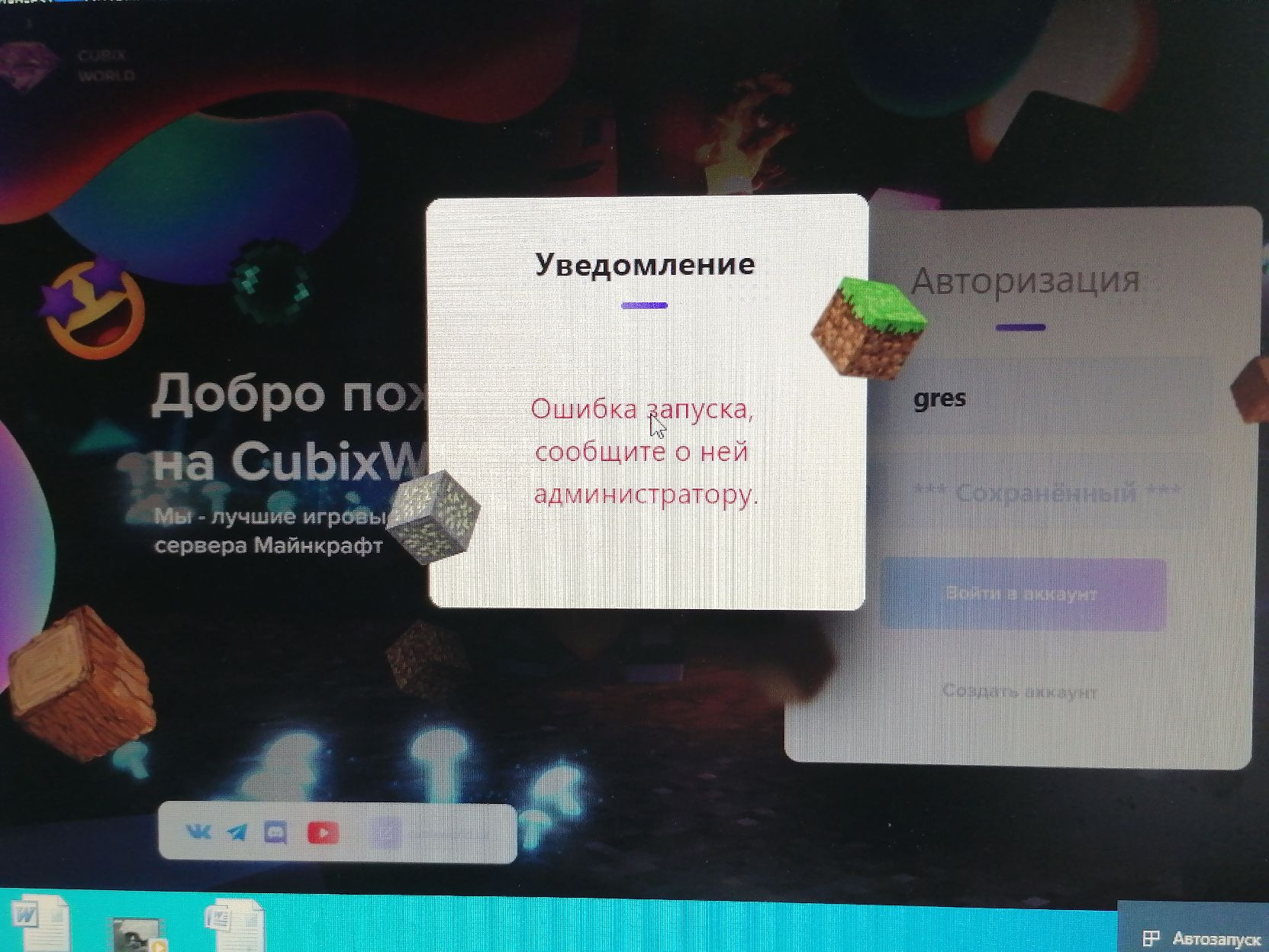 Ошибка при заходе на лаунчер