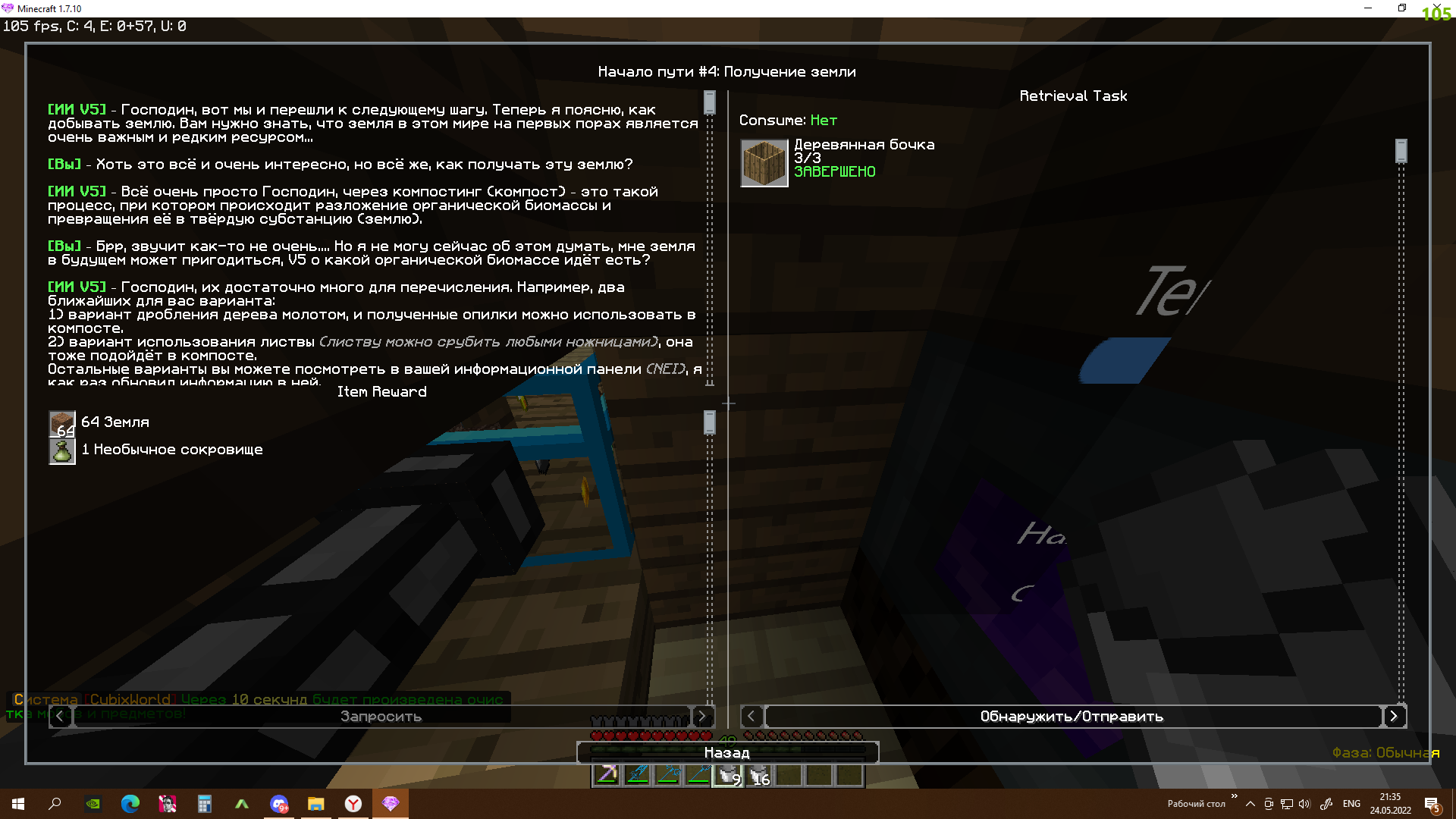 - Интересующий вас вопрос: я скрафтила 3 бочки, нажала кнопку обнаружить. А квест не сдается