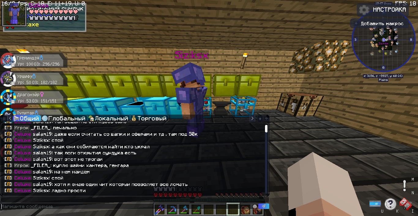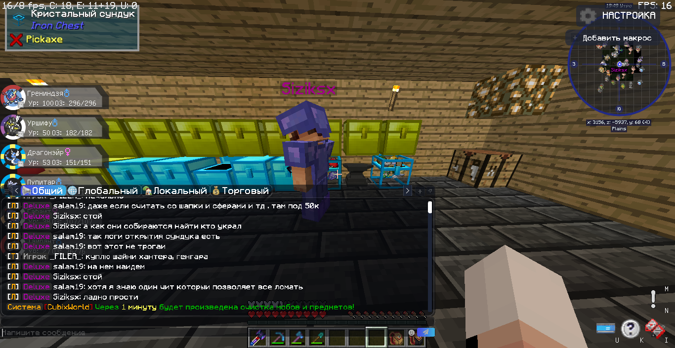 - Описание ситуации: в привате было 4 человека , я и 3 сокоановца, возвращаюсь на кланхом, а там пусто. Человек сознался, но вернул малую часть вещей.