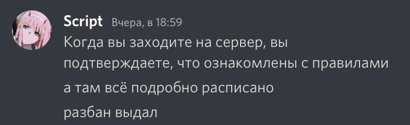 Не вижу смысла данной заявки, т.к разбан был выдан Вам еще вчера, и я даже сказал Вам об этом.