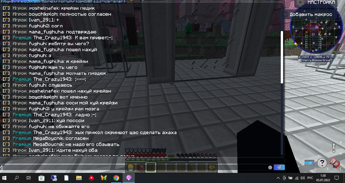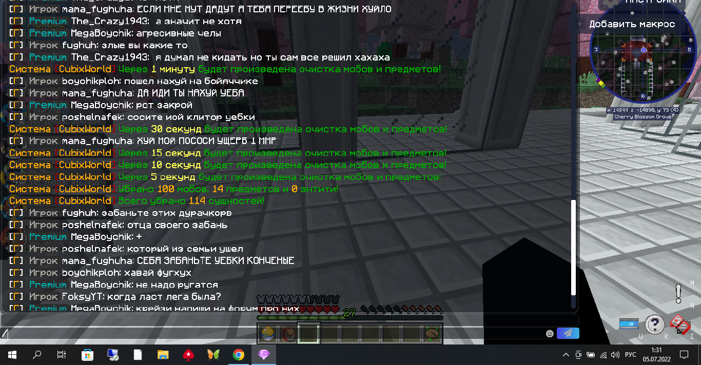 - Описание ситуации:я при заходе на сервер получил огромное кол-во оскорблений в адрес меня и моих родителей. таких скриншотов у меня 3 штуки и там все сообщения от этих людей, прошу за мутить их ну сутки- двое суток