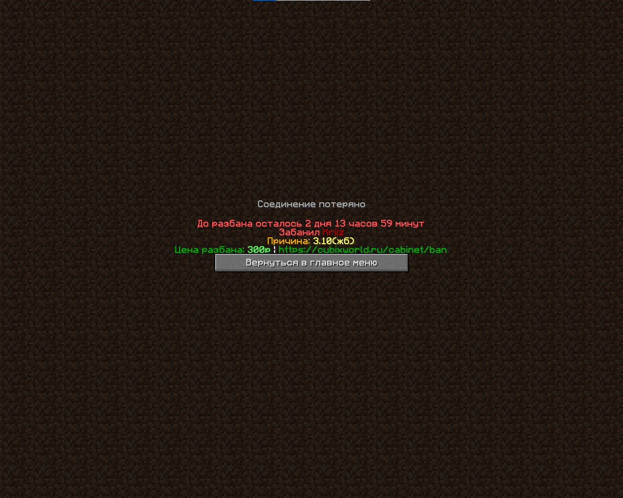 3. Описание произошедшей ситуации;Когда меня не было на сервере забанил по причине 3.10(жб).Не знаю тонкостей, хочу о них узнать,за что меня забанили