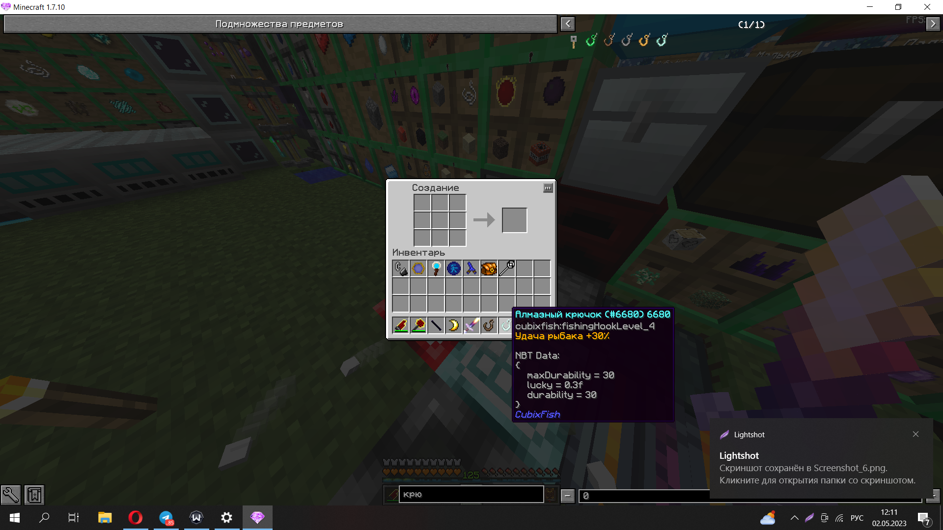 - Алмазный крючок, увеличивает удачу, но разница не чувствуется совсем, и я не редко этим занимаюсь, а буквально каждый день,