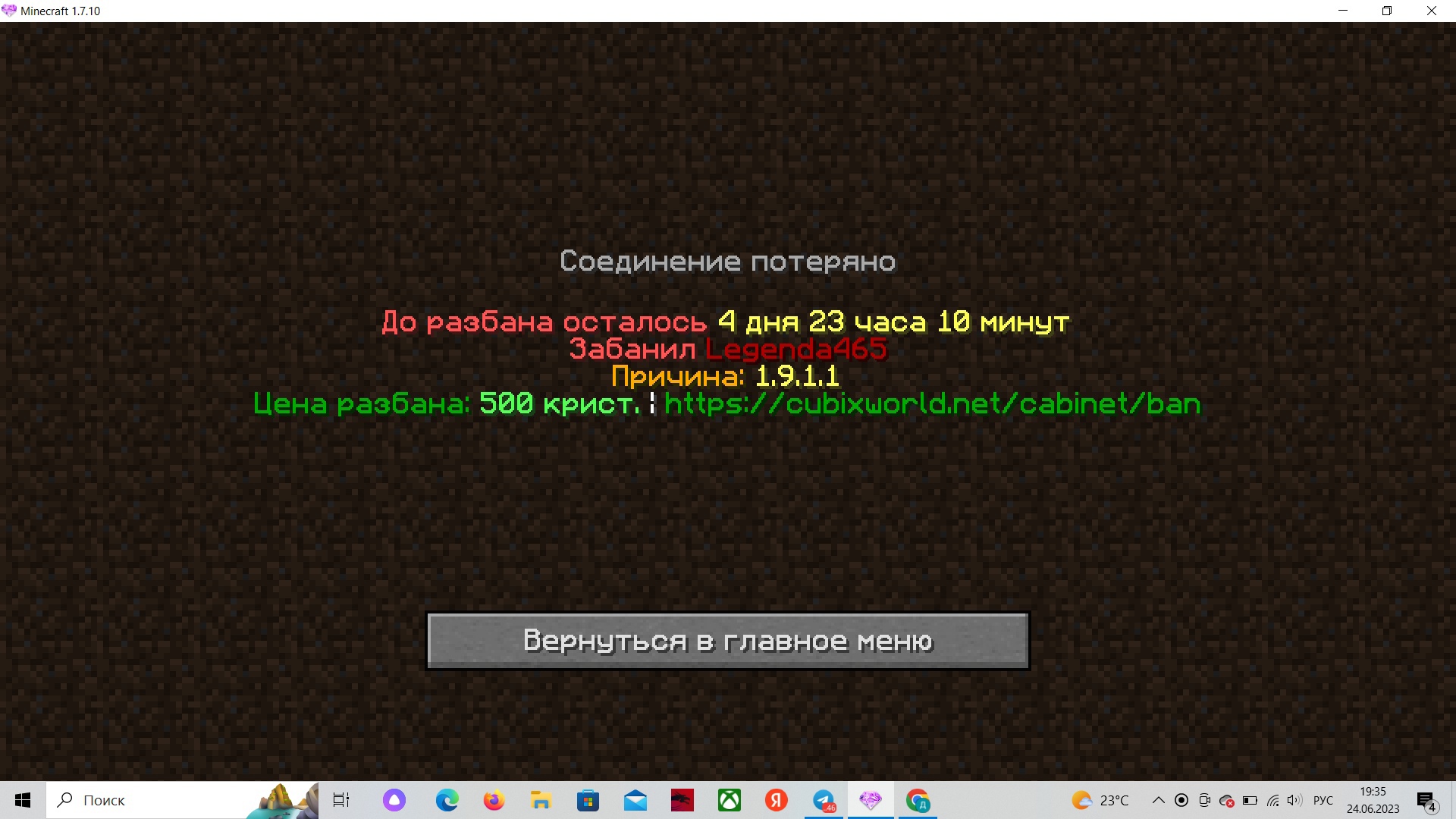 Причина бана - 1.9.1.1