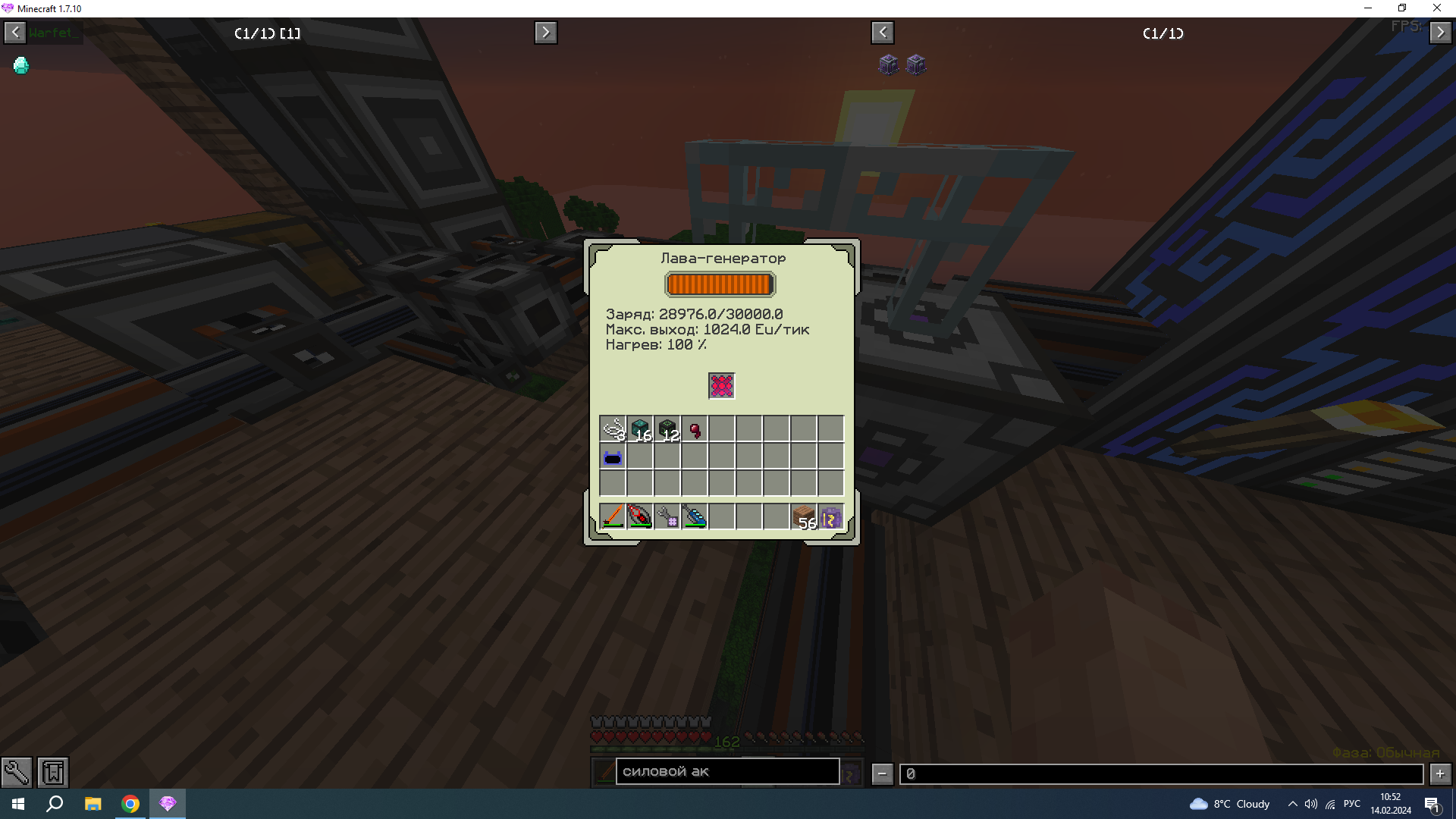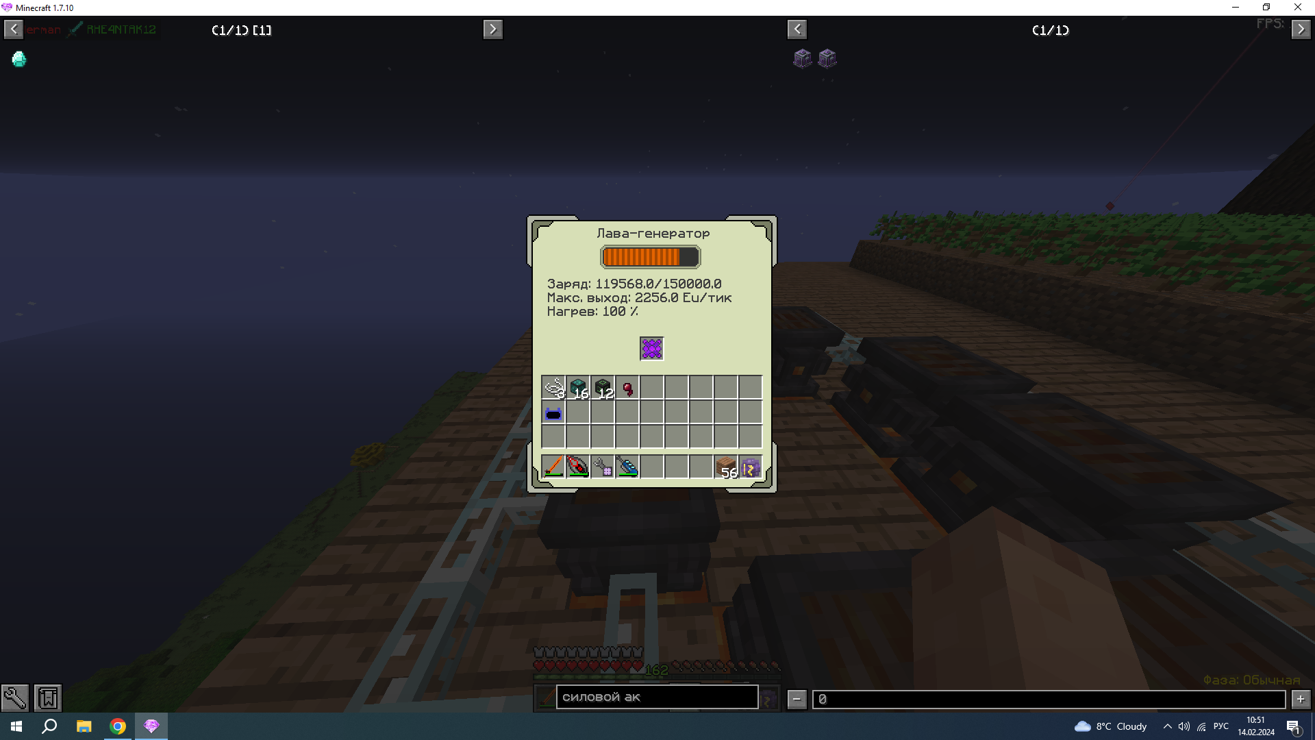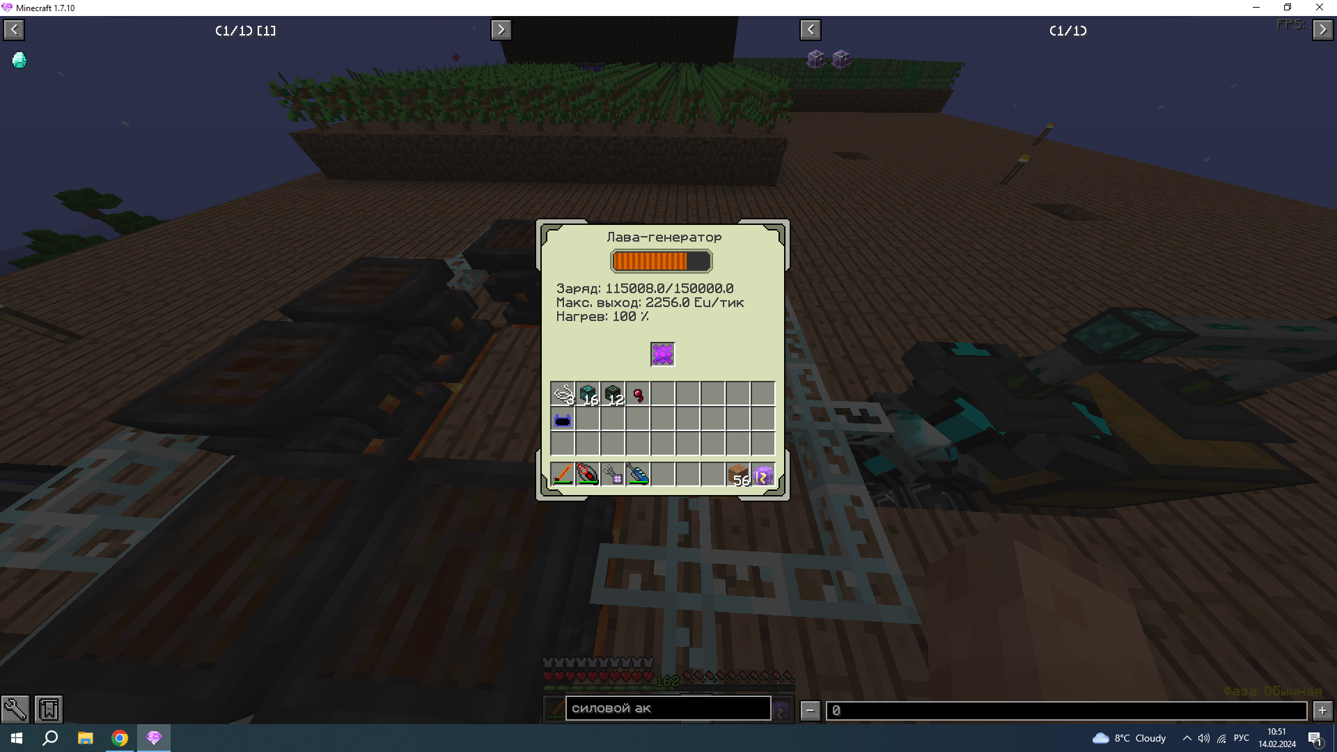 - Интересующий вас вопрос: дело в том что я подключил 8 лав-генераторов на одном чанке к молекулярке