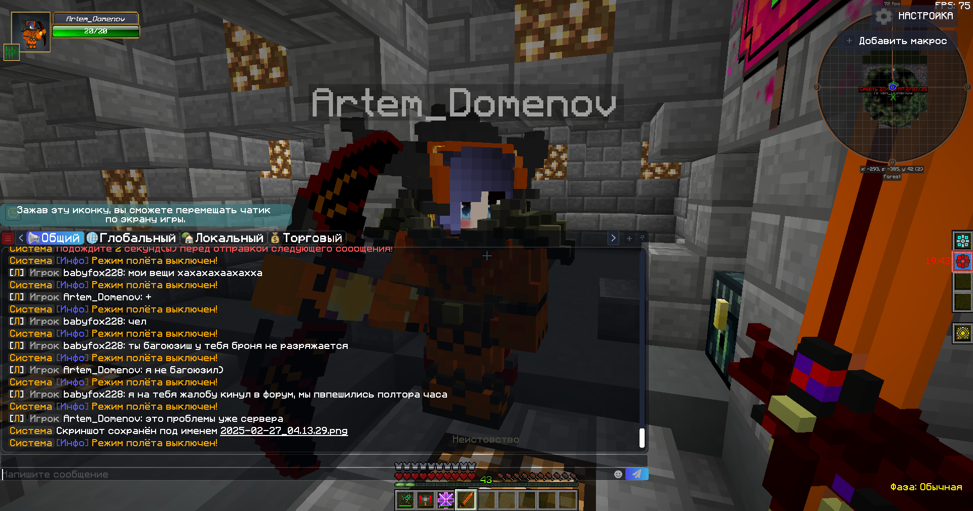 - Ваш никнейм, сервер:babyfox228, TechnoMagic
