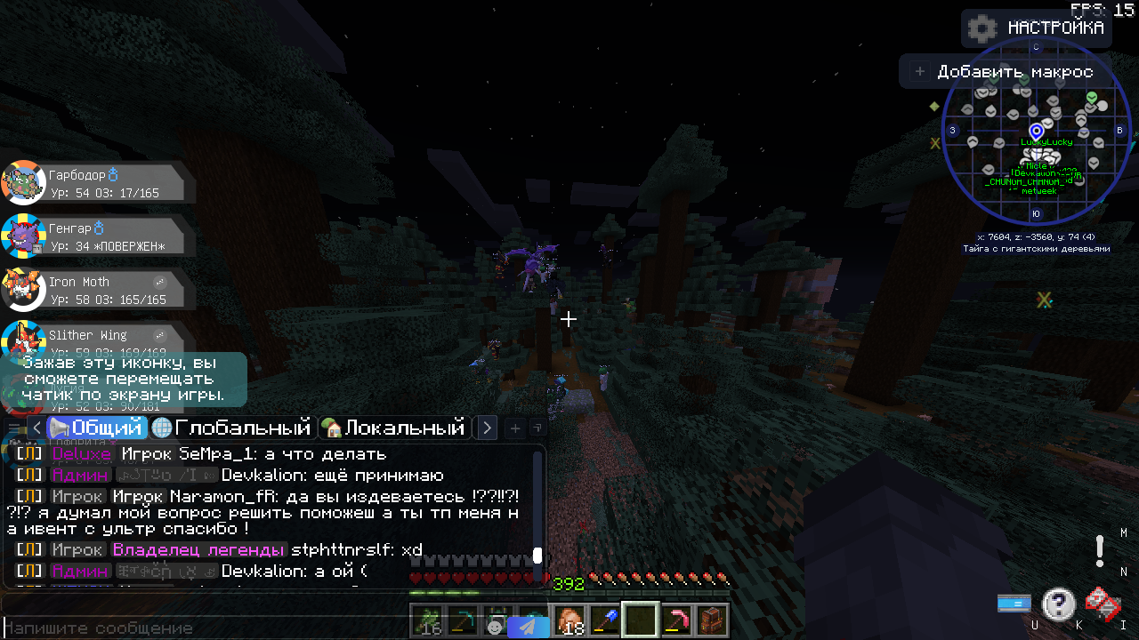 когда я написал об этом упомянутому администратору , я увидел сообщением на разрешение ТП к админу , приняв его оказался на ивенте , вылетев с ультра-измерения , на сообщение что я ожидал получить какойто фидбек или помощь админ только сказал ой , дальше было простое игнорирование моей ситуации так как она была занята ивентом , с её стороны для меня это очень не уважительный поступок , вопрос с 2 вылетами и потерей покеболов и 2 покемонов "Корвинайт" так и не решён!!!!! а ответа не было получено!!!!