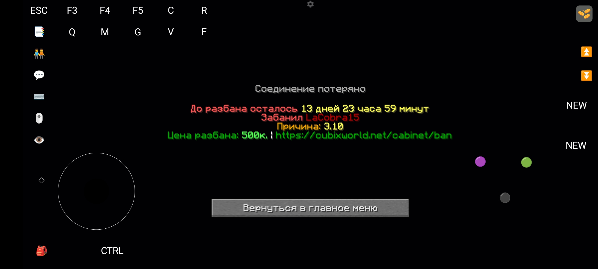 Во-первых, если ты не понимаешь разницы между "персоналом" и "донатером", то хотя бы загугли чем является каждое из понятий, чтобы впредь не приписывать людей к числу тех кем они не являются. Во-вторых забанил я тебя по пункту 3.10 обоснованно, так как, если ты внимательно прочитаешь правило, в нем указанно "любые виды гриферства", но мало того, что ты не расцениваешь эти слова в серьез, так ты ещё и пытаешься дальше летать по миру и искать, какие-то не заприваченные места баз людей чтобы забрать ресурсы других игроков. В связи с чем я не "угрожал" тебе как ты сказал, это называется предупреждение, чтобы в будущем бан для тебя не был чем-то неожиданным.