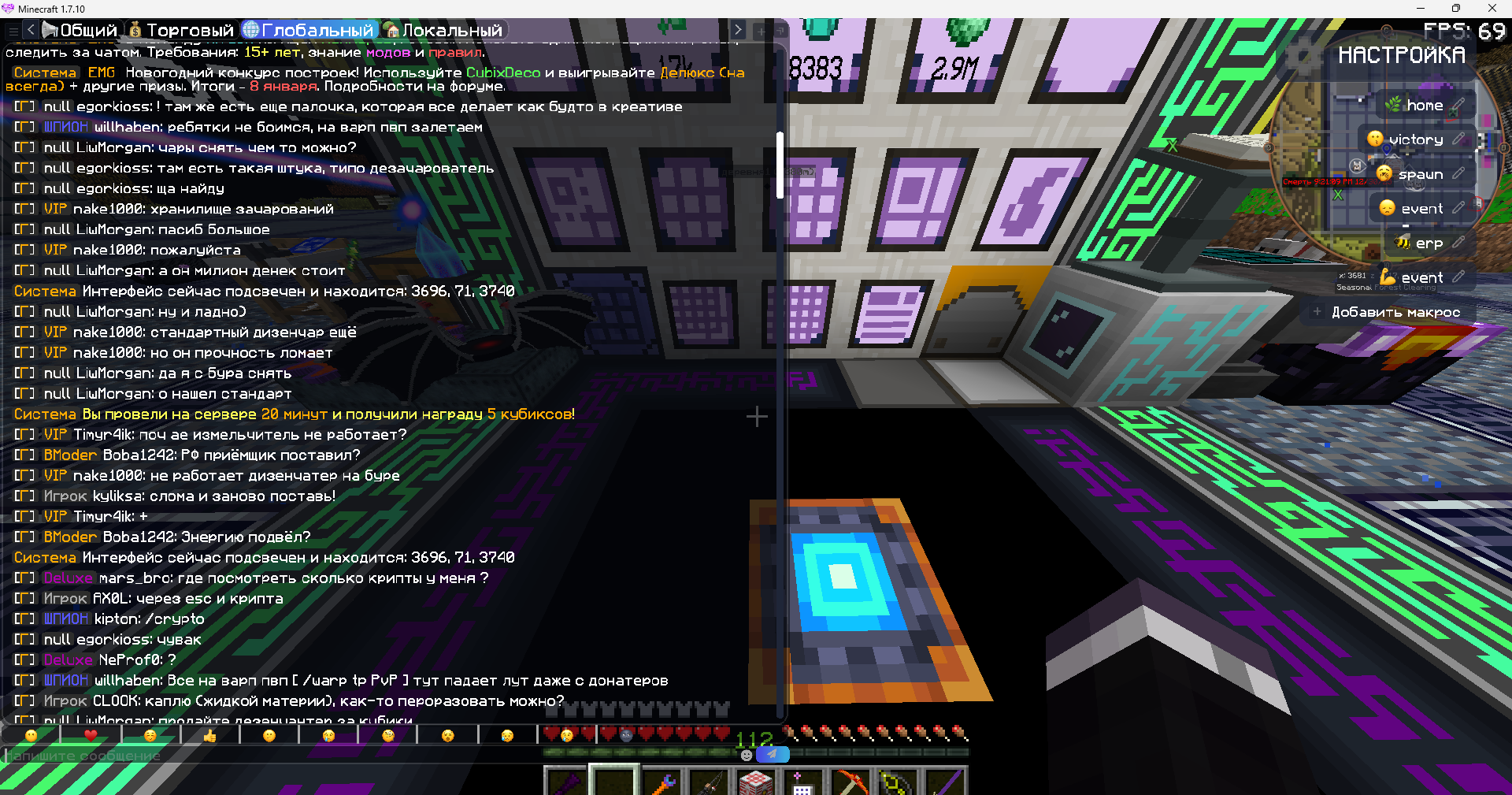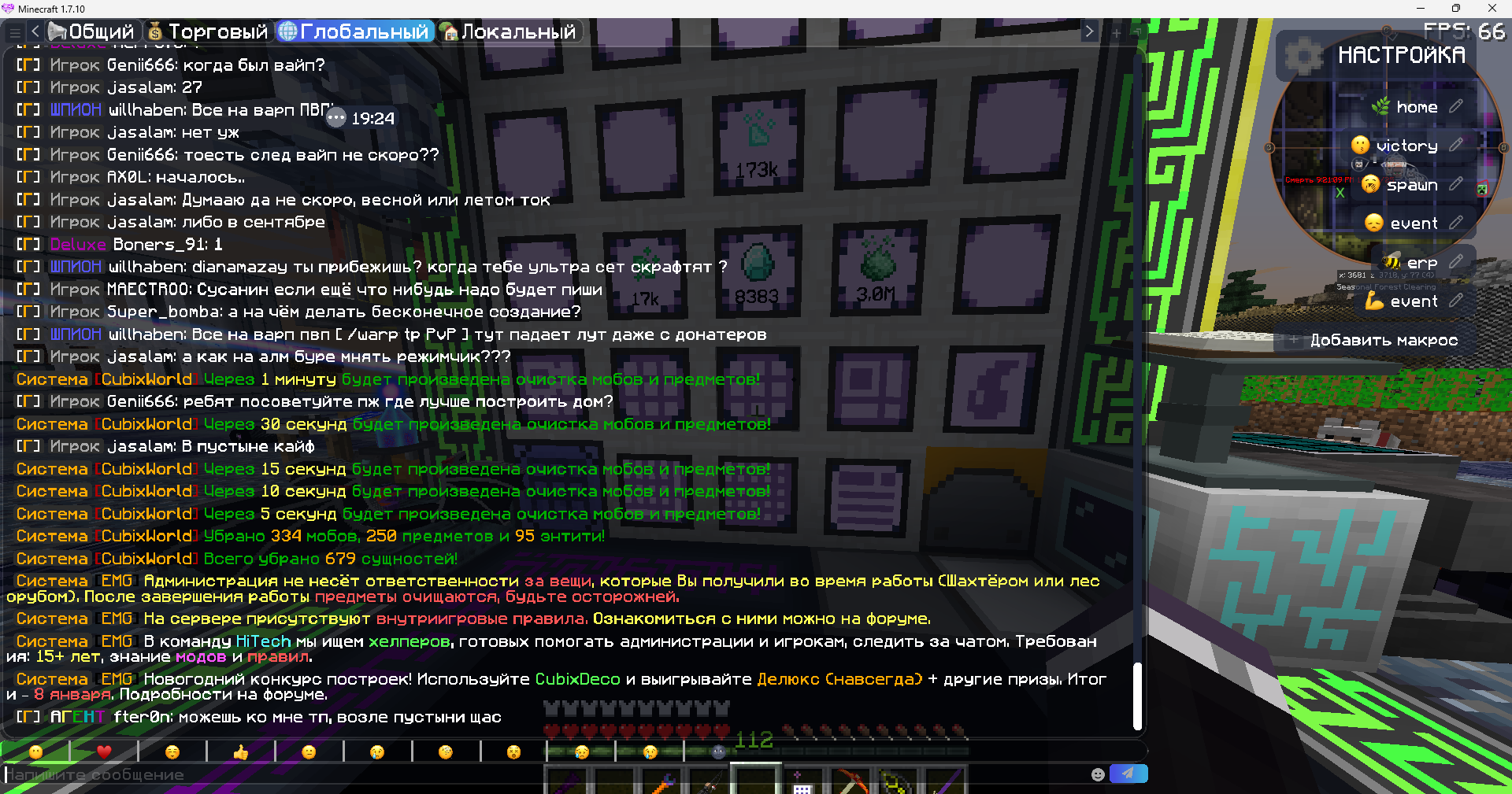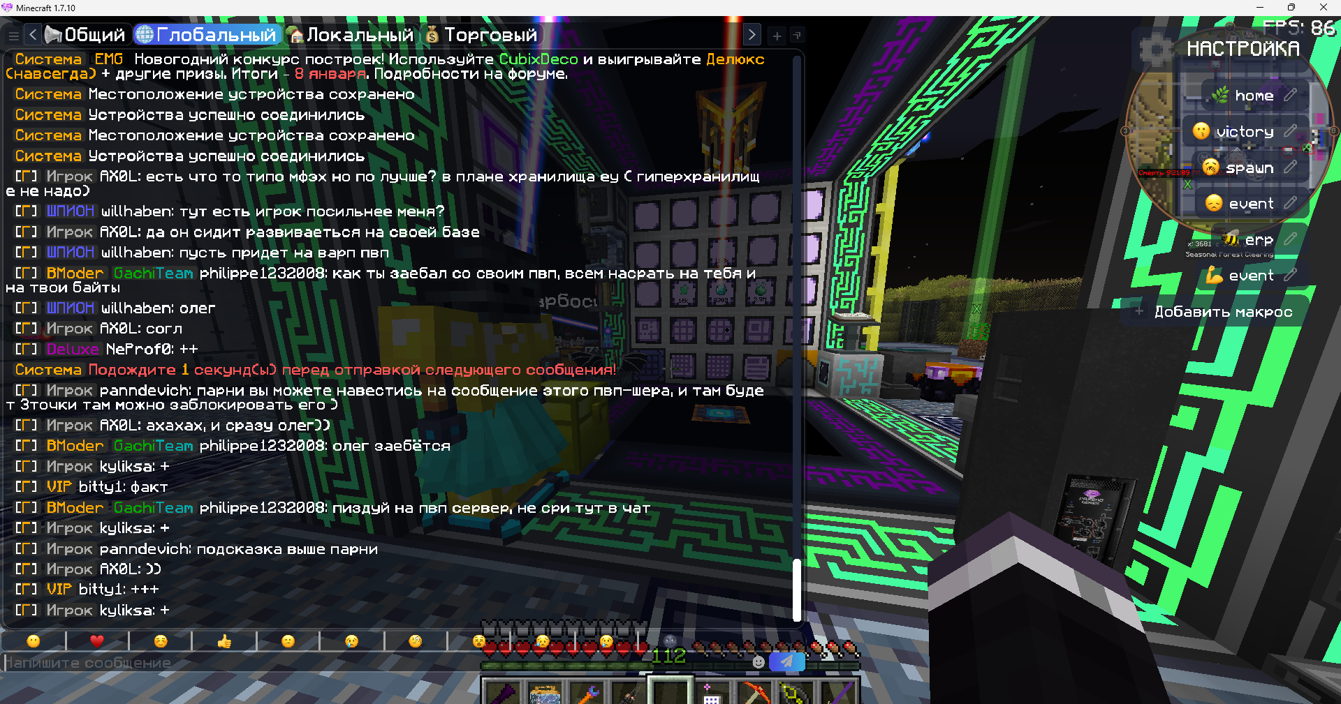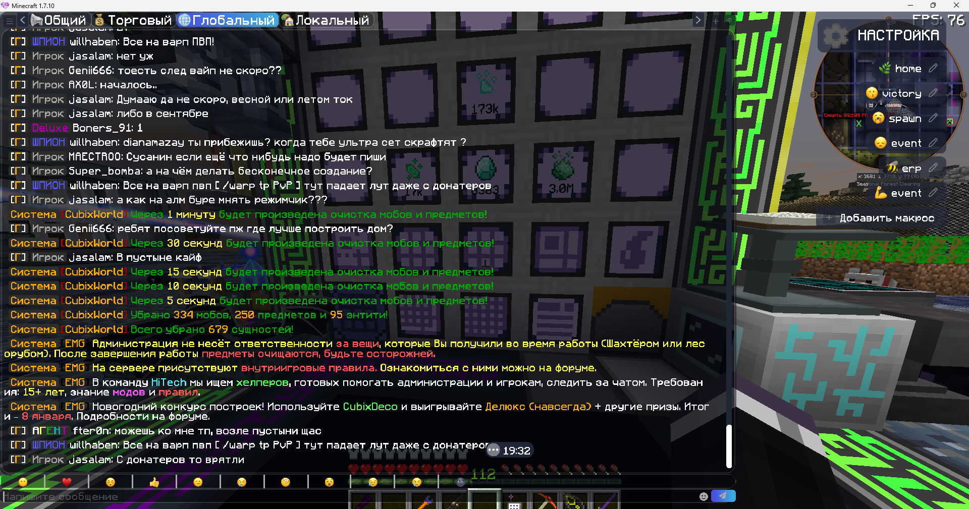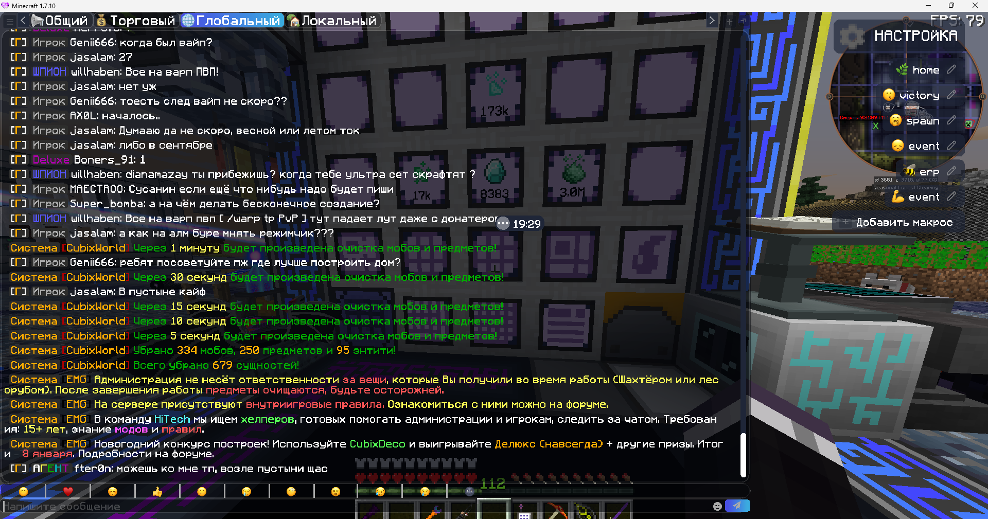 Проблема в том что данный игрок "willhaben" на протяжении нескольких часов зазывал в глобальном чате на варп пвп( не знаю считаеться ли даже рекламой) даже после нескольки просьб прекратить.