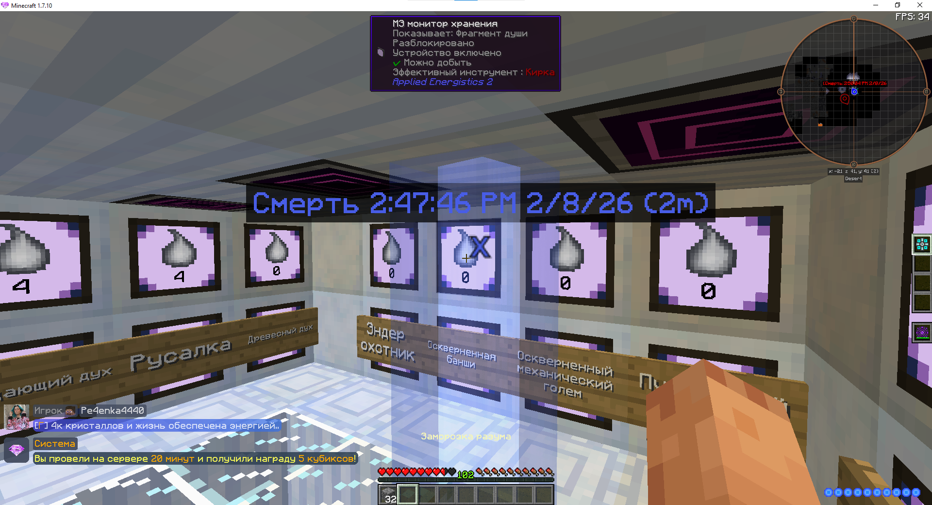 - Интересующий вас вопрос:Погиб стоя в афк на боссах перед очисткой, потерял квестовые предметы и демон сет с квант пушкой. Понятия не имею как я мог погибнуть имея в инвентаре несколько заряженых ультра кристаллов по 5 млрд.Просьба восстановить утерянные вещи ибо без багов тут явно не обошлось