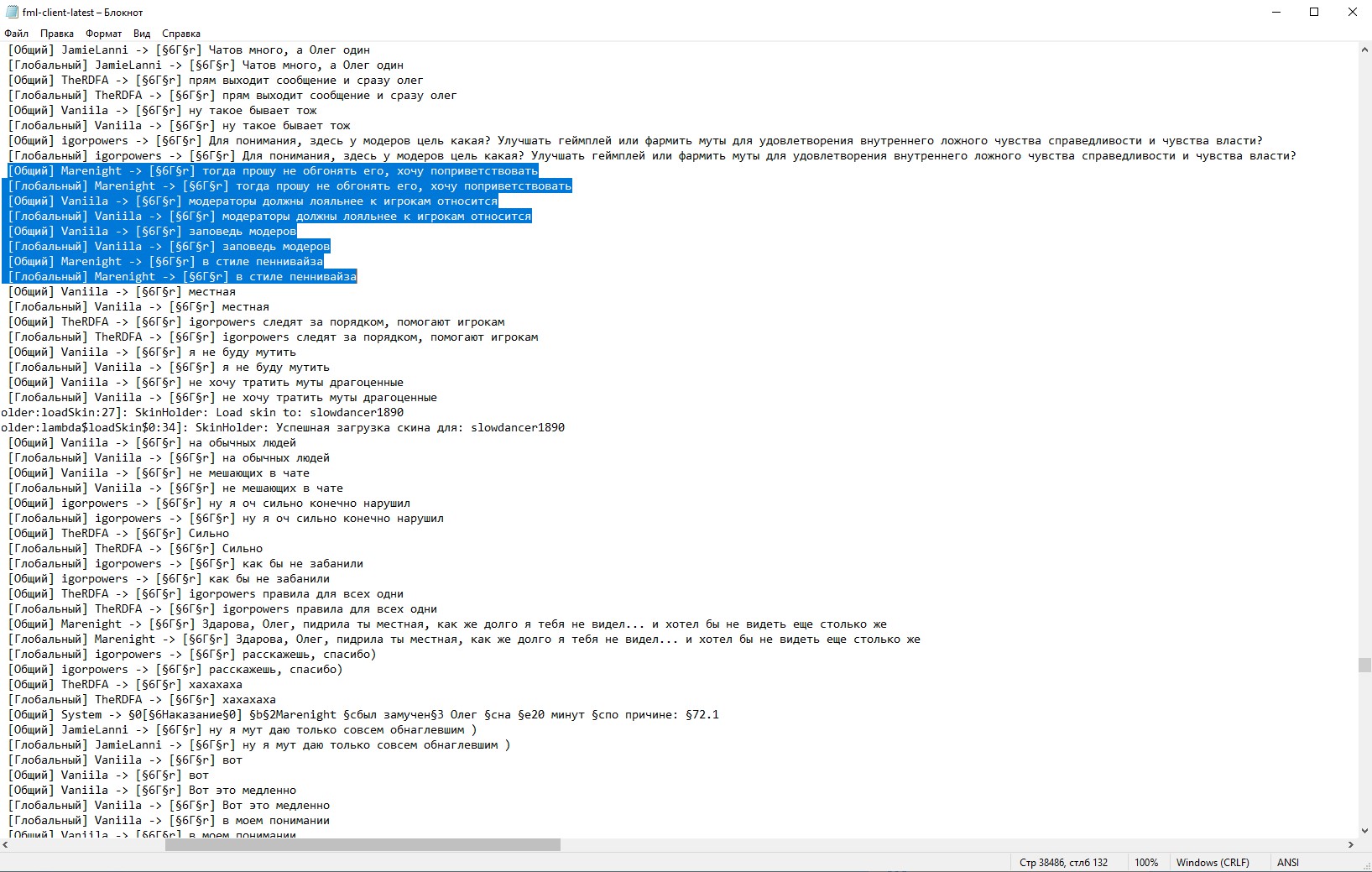 - Описание ситуации: Ситуация забавная на самом деле. Пока узнавал что изменилось на сервере за 2 года отсутствия, осознал что так любимый мной Олег все еще живет и процветает (кто не вкурсе, Олег - это программа, мутящая каждого непотребного). Ну и поприветствовал его, в стиле игрока PenniVais-а. Олег, как и почитается исправно работающей программе, выдал мут на 20 мин, с чем я полностью согласен. А потом внезапно Кирилл выдает бан на 40 минут по причине 2.2.... т.е. за оскорбление или унижение... программы, а не реального человека. Крч посмеялся я знатно, а бедняге Кириллу объясните, что он уже фигней страдает, а не адекватно решает проблемы сервера со своими банами. Ну или уже по кнопкам промахивается, ведь эта ситуация в чате попадает под пункт 2.1. P.s. фотки все равно обрежу, так как это логи.