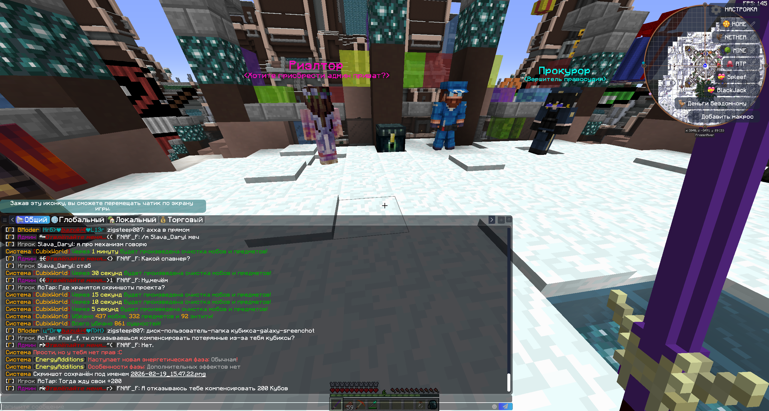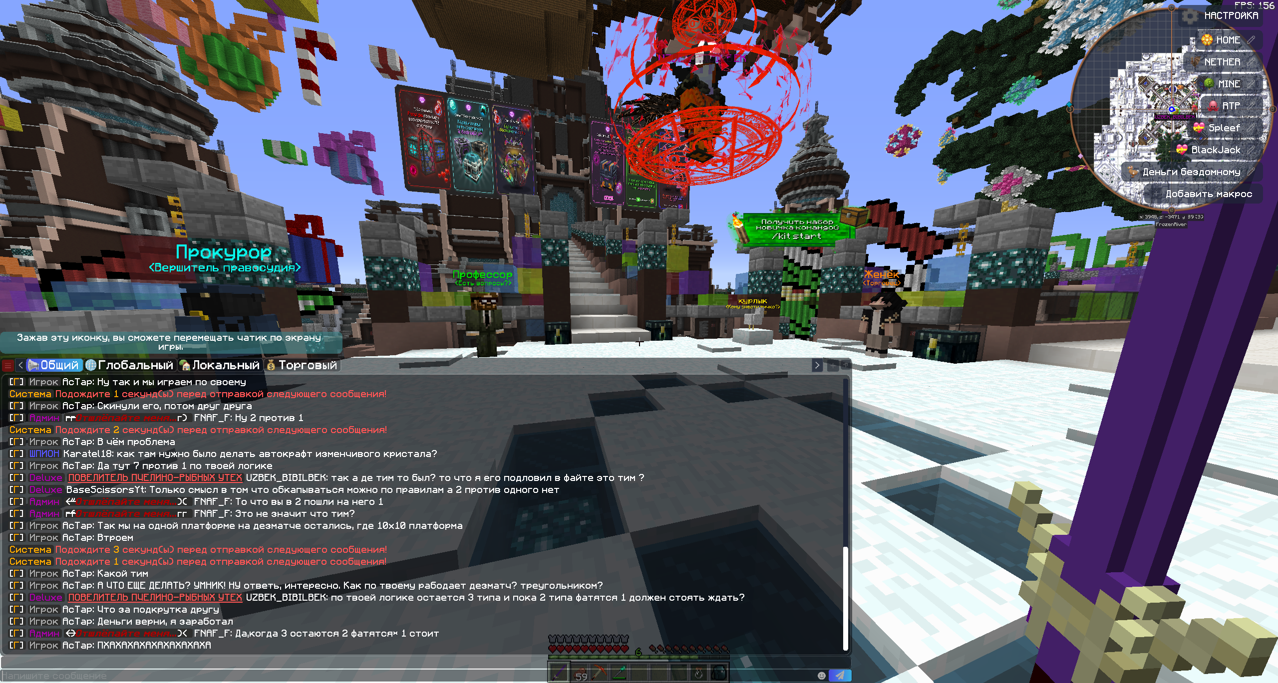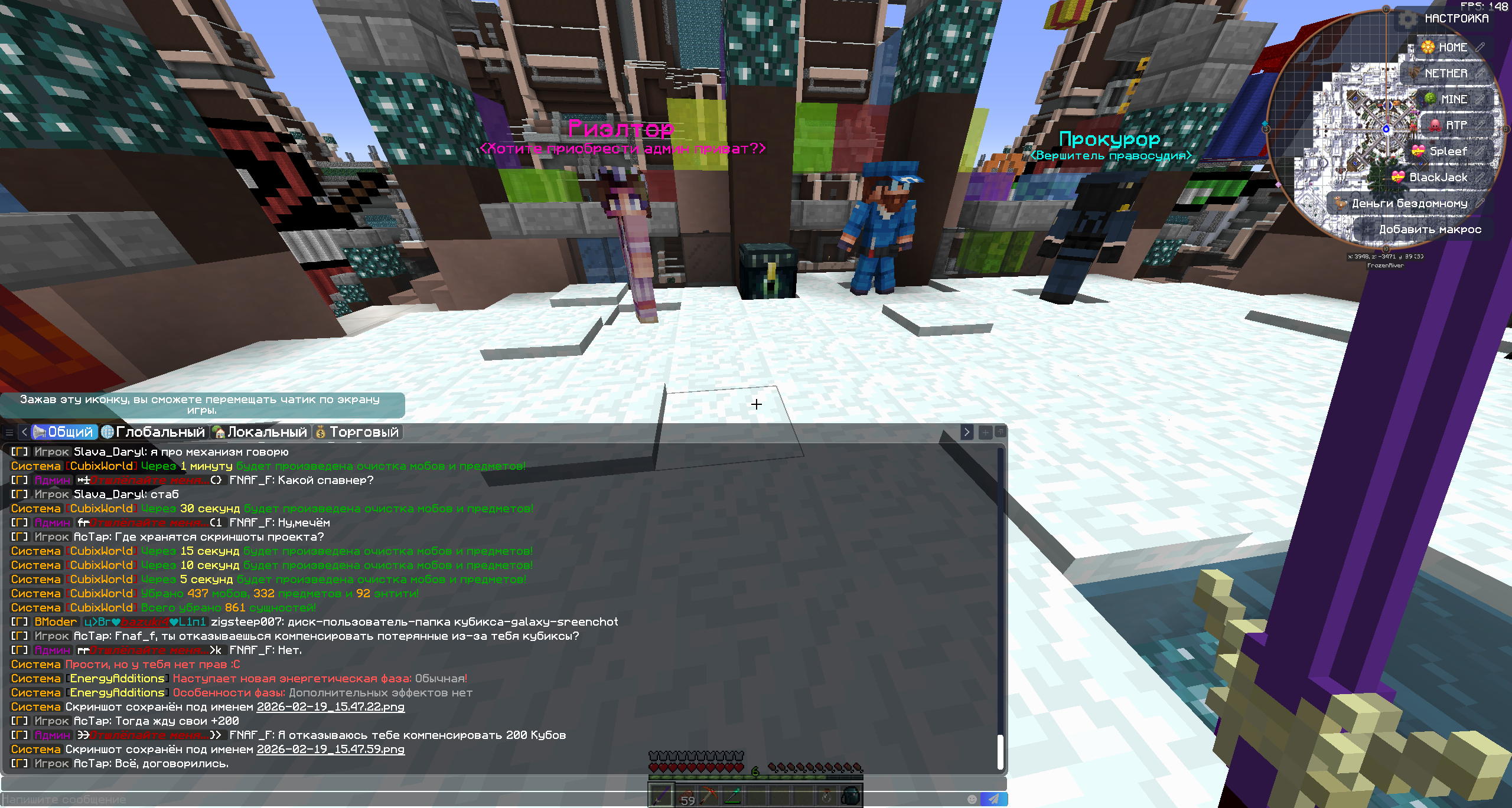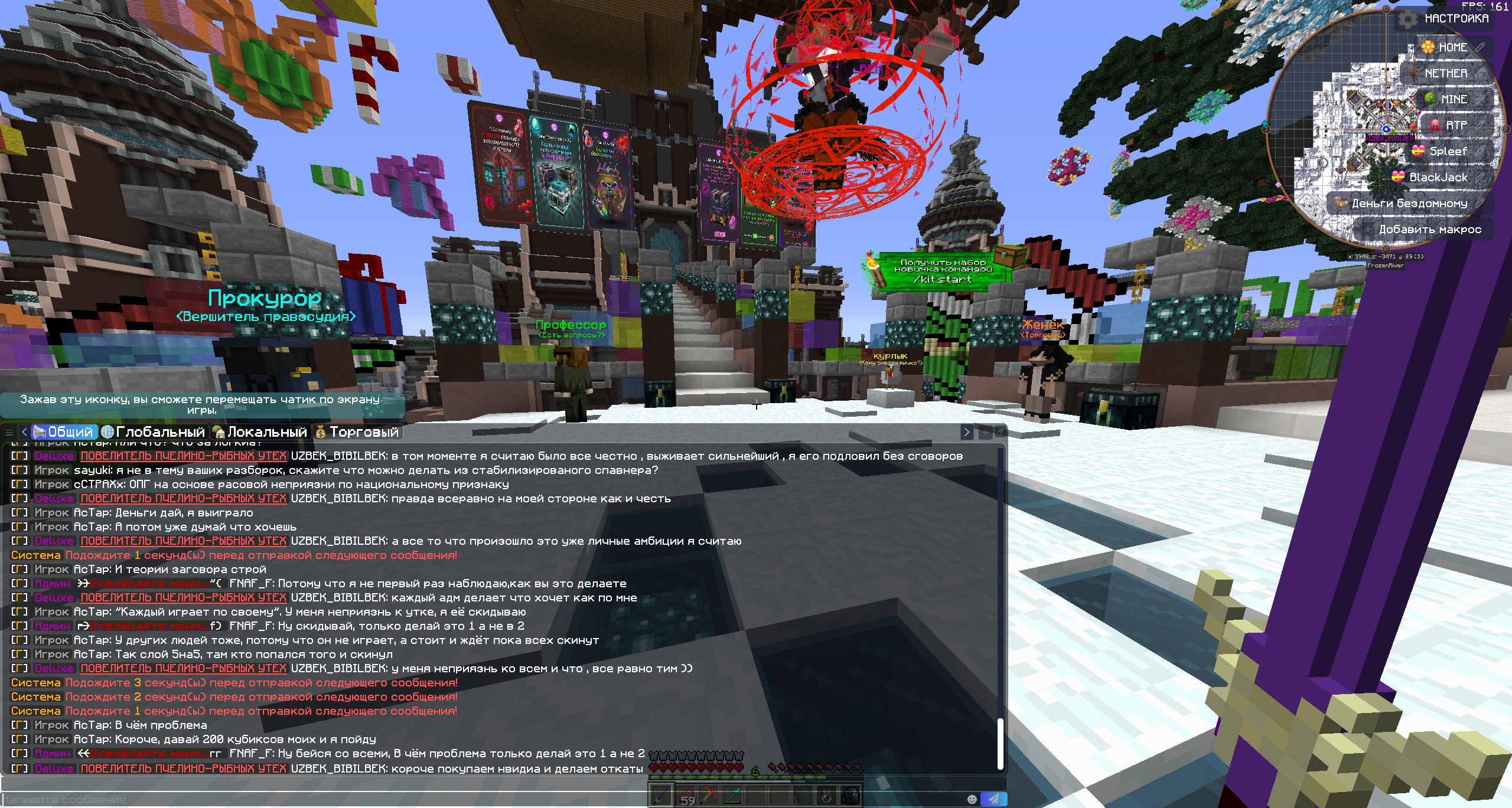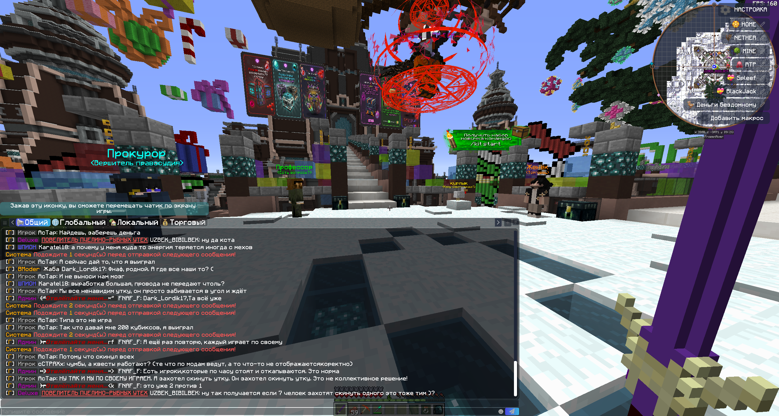3. Доказательства нарушения прикреплю в виде скринов так как запись майнкрафта через Nvidia не сохранилась. Более подробную информаци о том, кто, когда и за что кикнул с сервера можете посмотрерь в логах сервера.