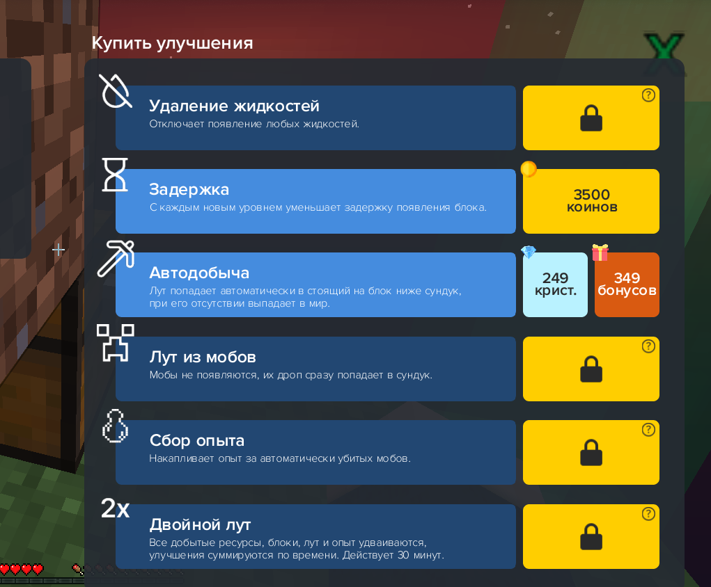 Сколько стоит улучшения в одном блоке?