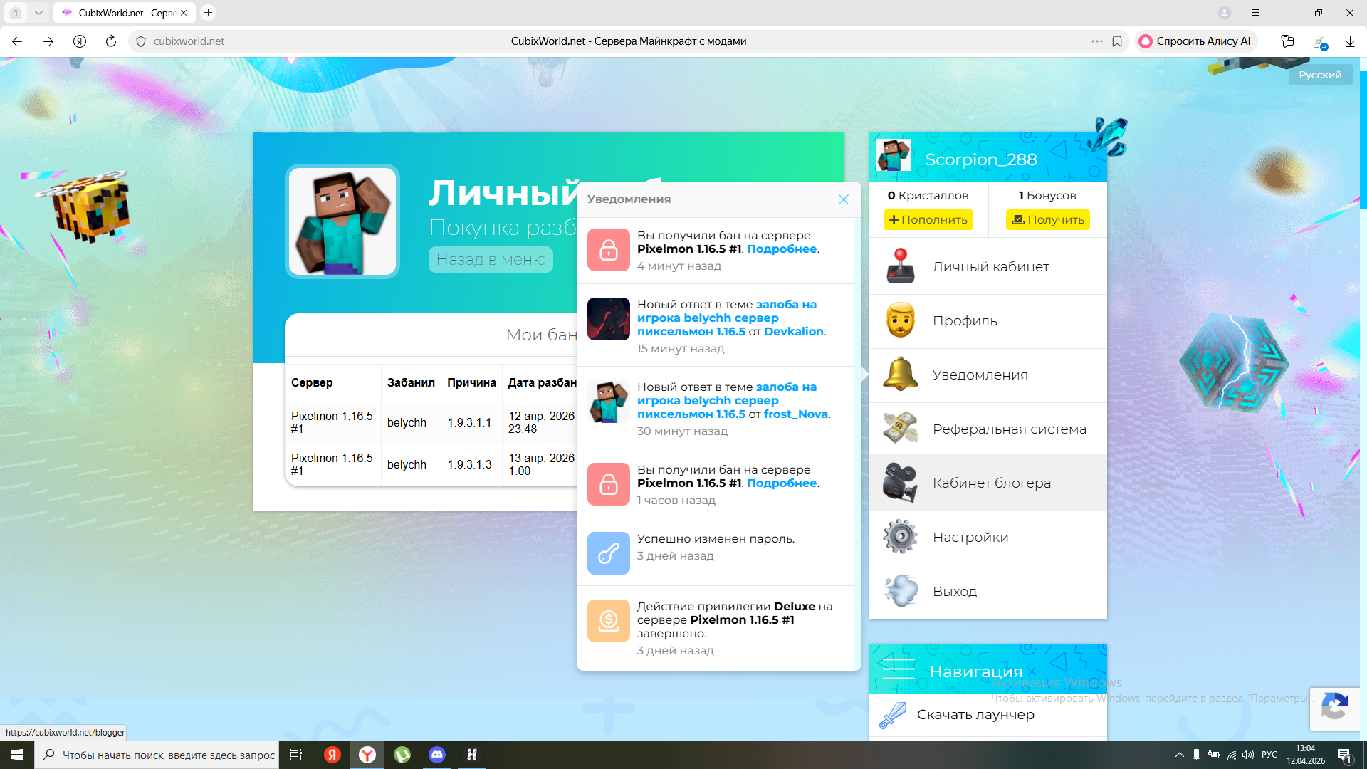 Ваш никнейм, сервер:Scorpion_288- Никнейм нарушителя:beluchh