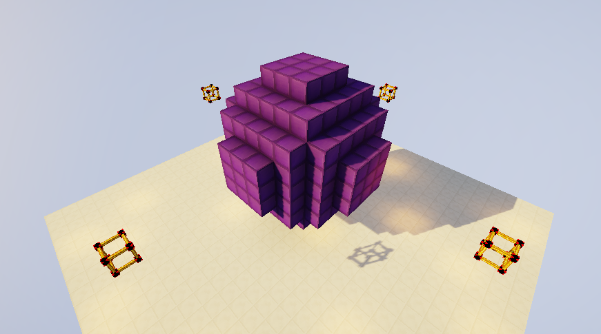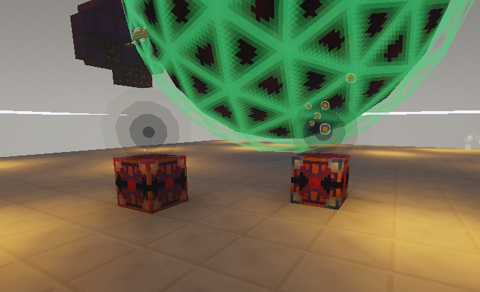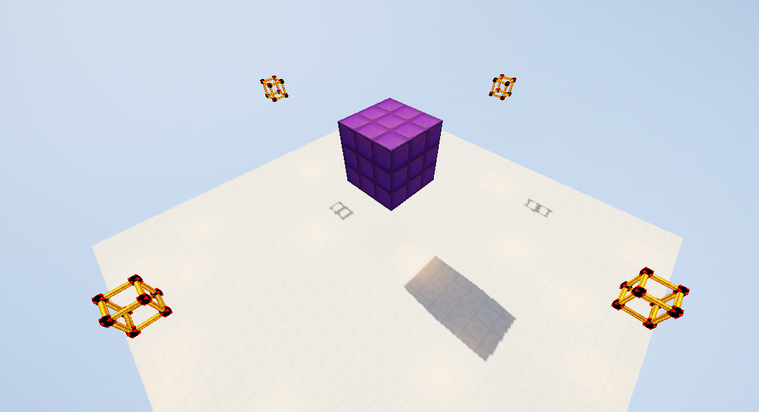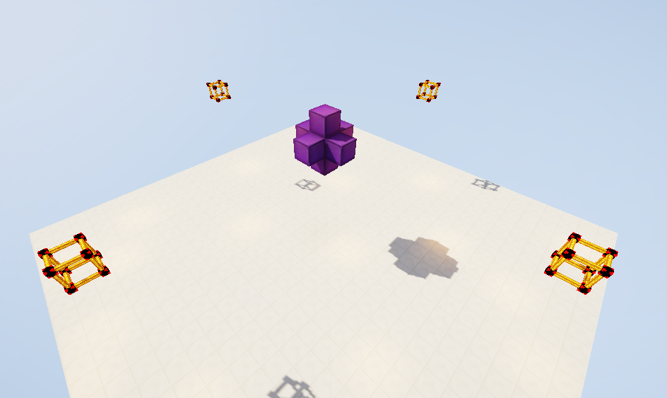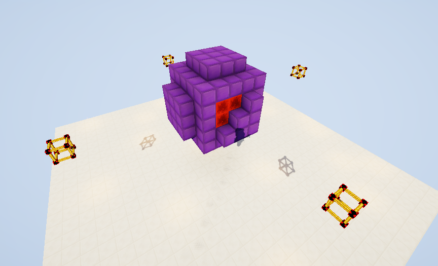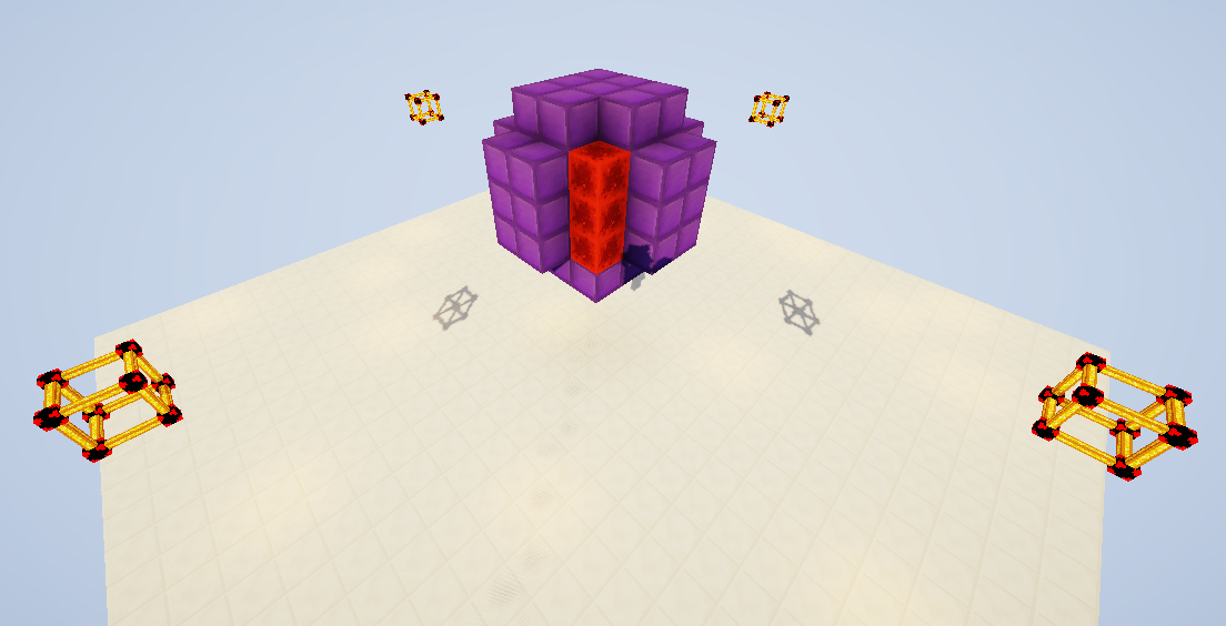 Для наглядности показал блоками кварца, на каком расстоянии я поставил генераторы частиц, изменяться расстояние в этом гайде не будет.