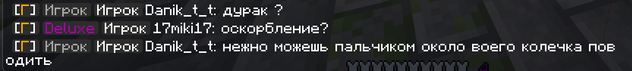 - Описание ситуации: я написал другому игроку что то типо ( прими обесчаю убью нежно :D) в ответ получил такую токсичность