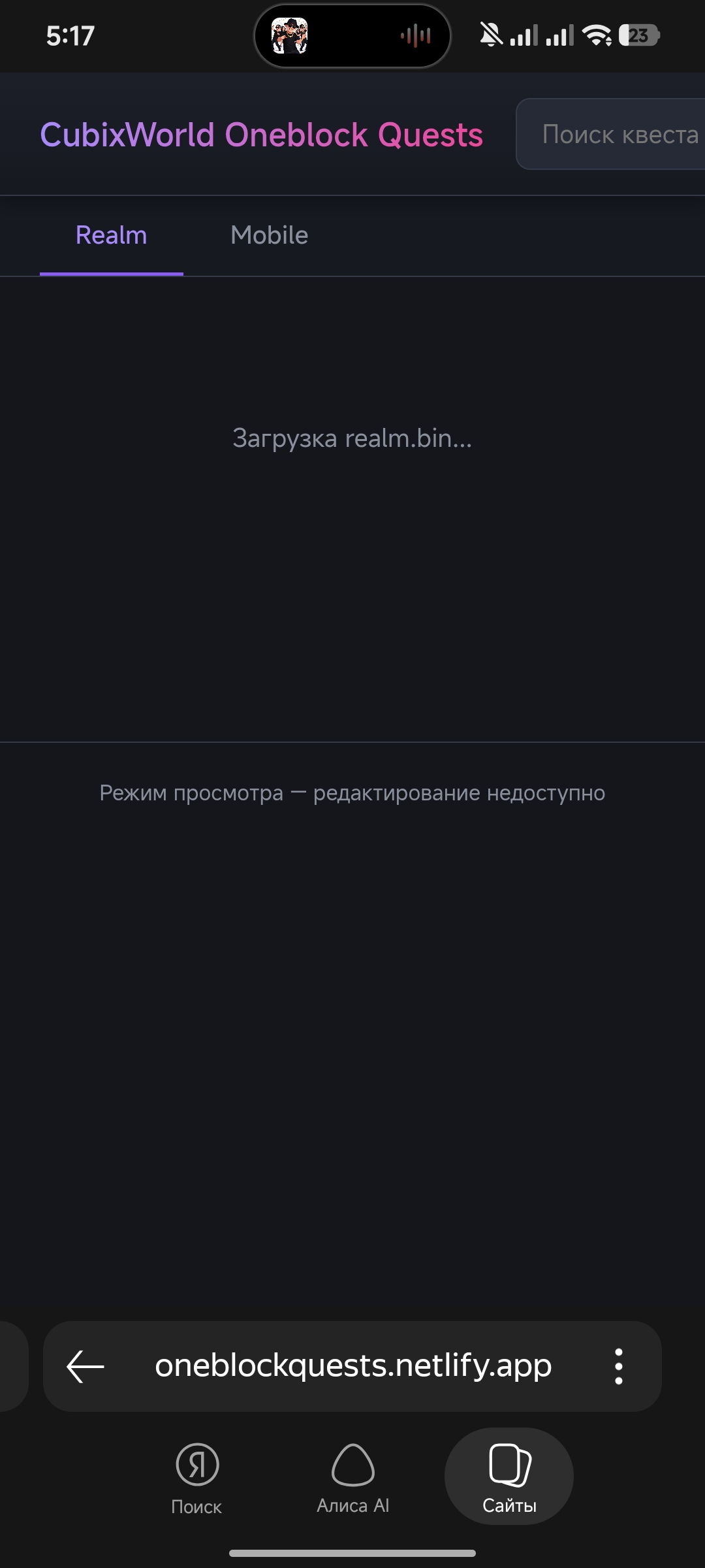 Интерактивный список всех квестов OneBlock- ссылка на форуме не загружается...(Надпись загрузка realm.bin постоянная) На телефоне ноуте с впн и без одно и тоже.