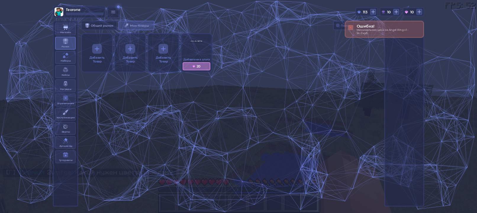 Описание предложения/идеи:При добавлении товара и выставлении цены ниже минимальной игра выдает ошибку