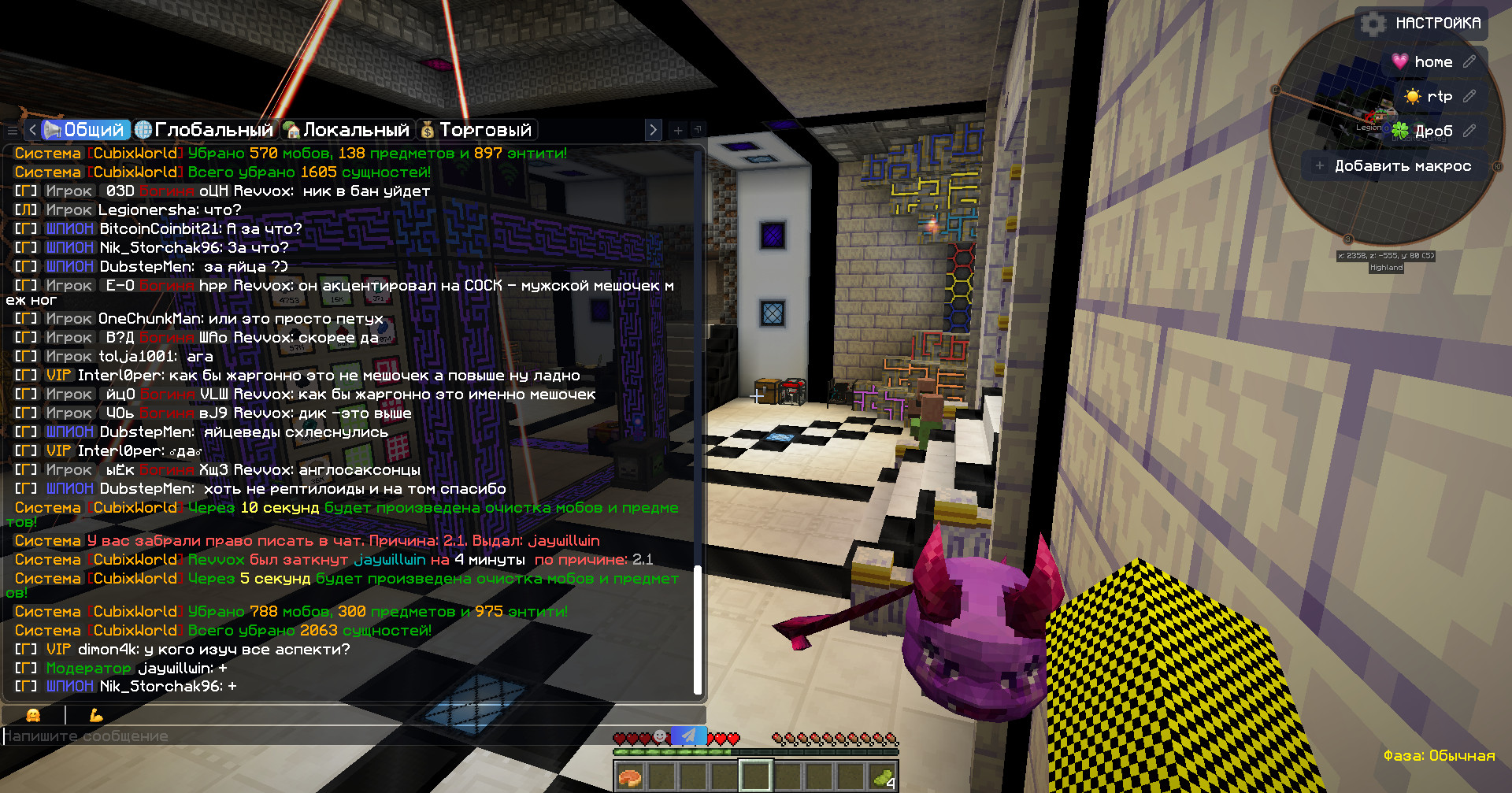 • Со старшим модератором MrRoBoTTT будет проведена беседа, но строгих выговоров за такое не будет. Очистка на сервере работает в обычном режиме, но может запускаться чаще только в том случае, когда валяется много предметов.