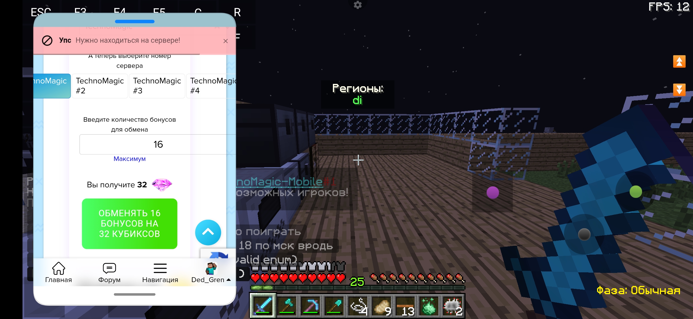 - Ваш никнейм, сервер:Ded_Gren, Techomagic