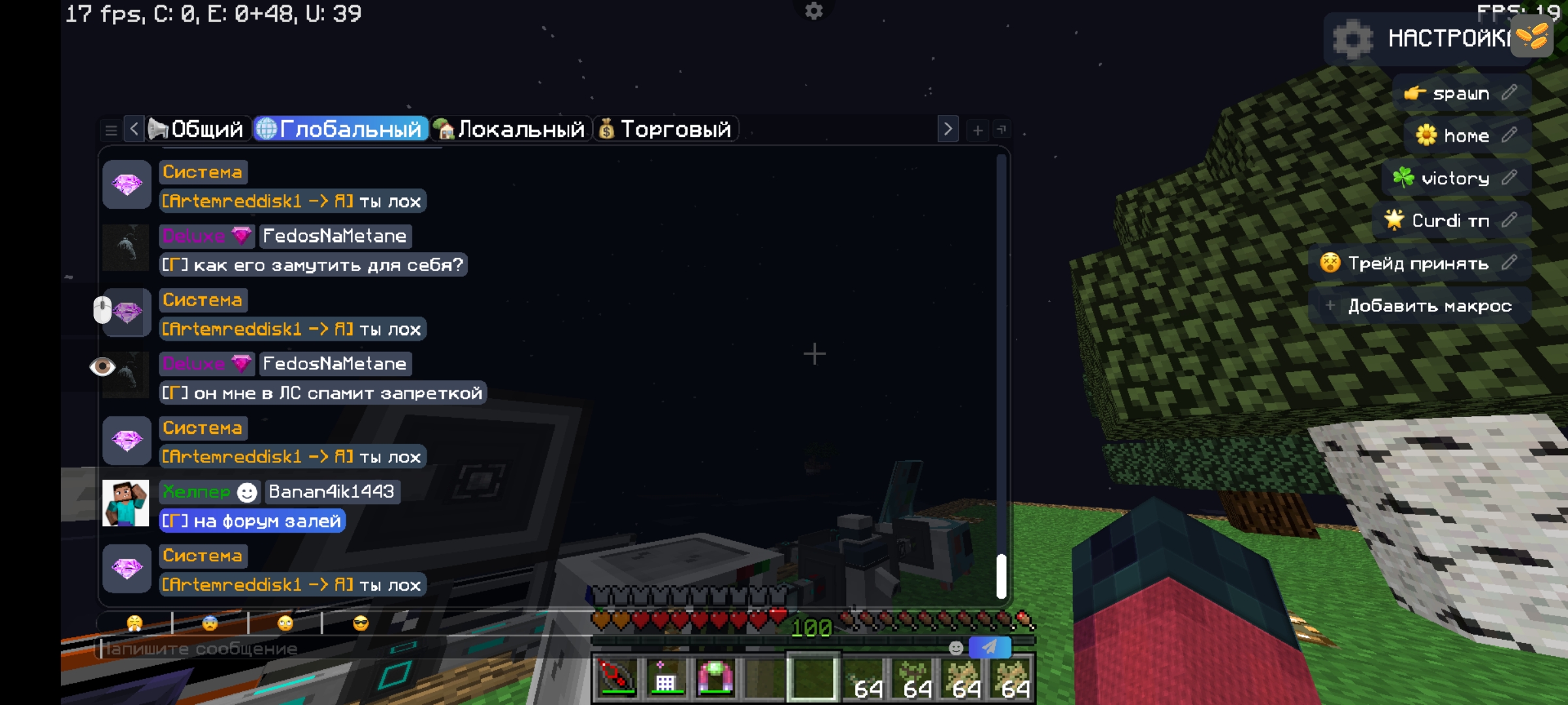 - Ваш никнейм, сервер: FedosNaMetane, OneBlock Mobile